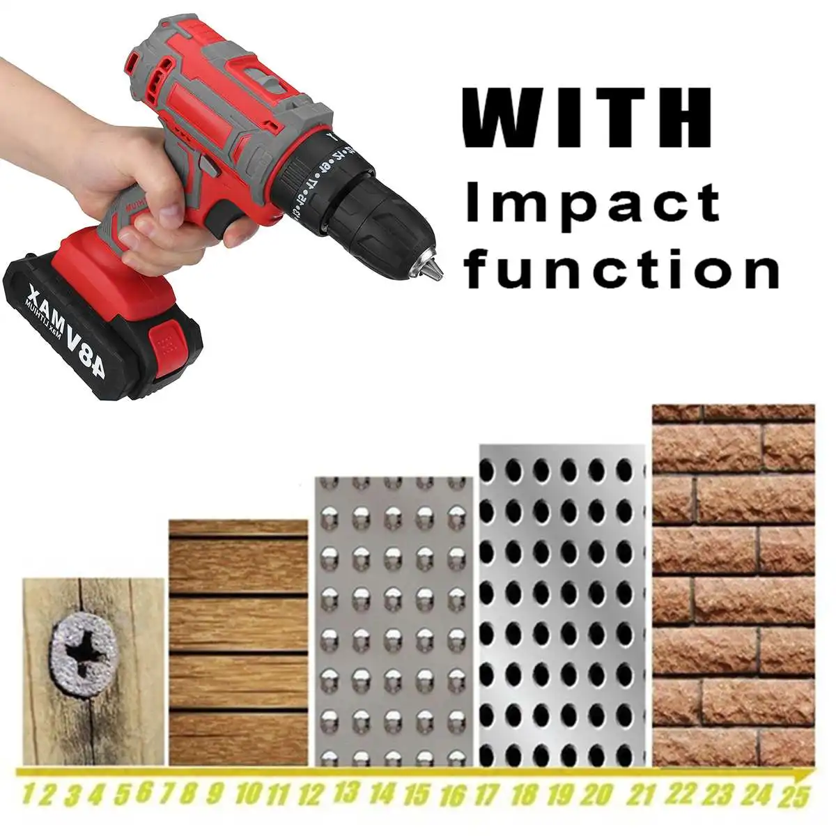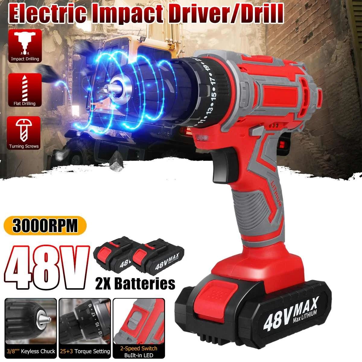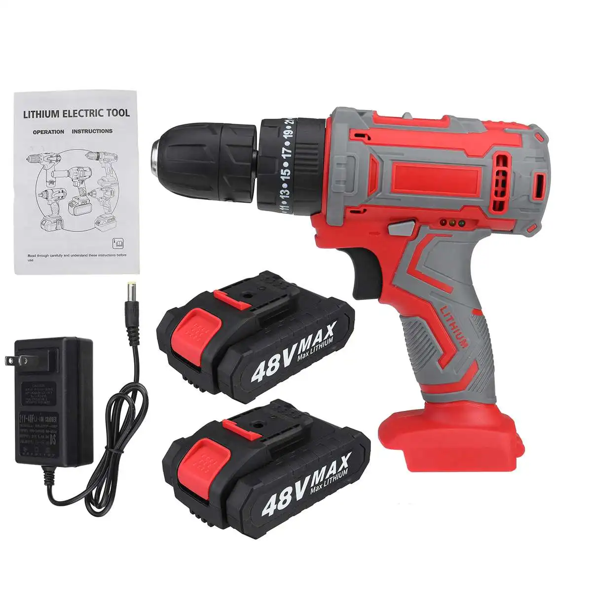 Аккумуляторная дрель-шуруповерт, 48 В, 25 + 3 крутящих момента