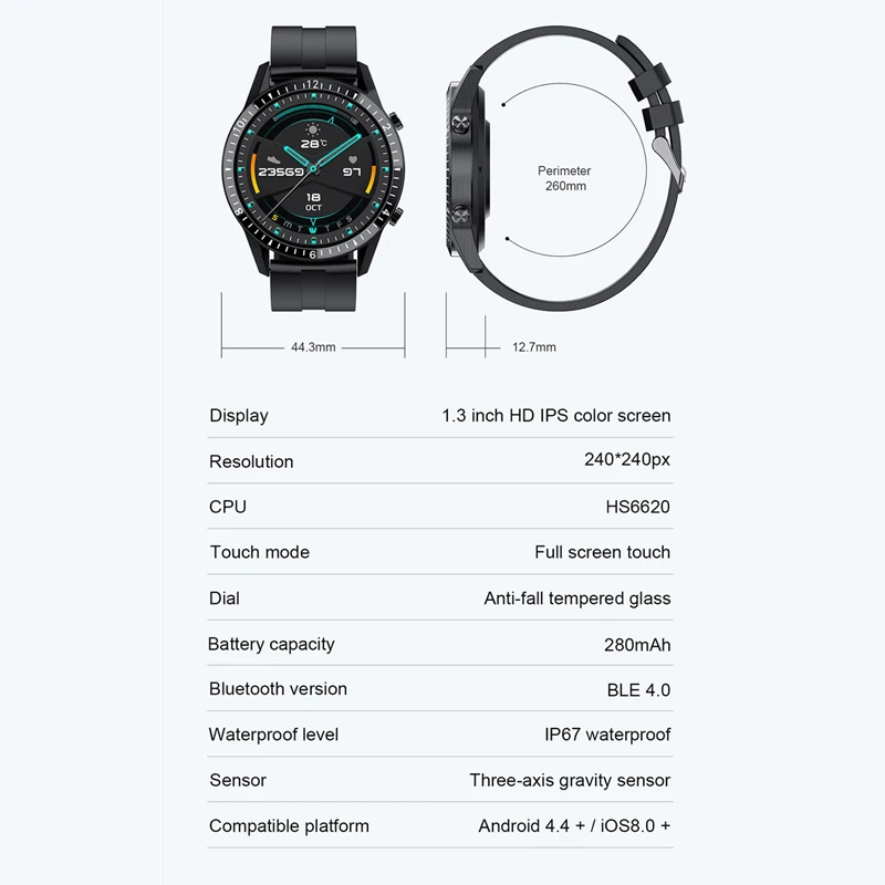 * Другие функции: напоминание о сидячем положении, напоминание о питьевой воде, будильник, удаленная камера, отсчет, Поиск телефона, поднимите запястье на светильник, переключитесь между несколькими циферблатами часов