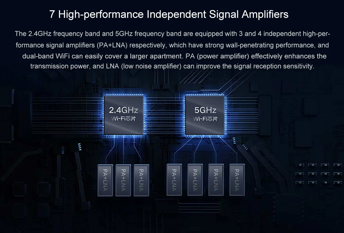 7 внешних антенн и усилителей мощности передают сигналы Wi-Fi на каждый уголок вашего дома. Могут быть подключены даже некоторые устройства с низким питанием.