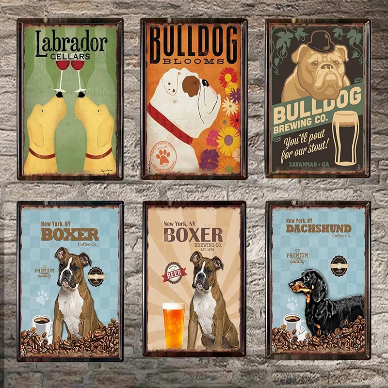 Металлическая жестяная наклейка в виде бульдога таксы лабрадора