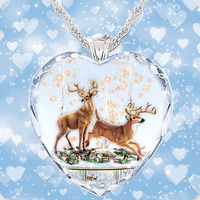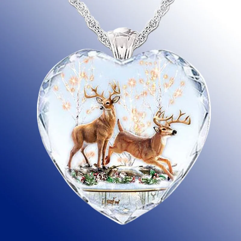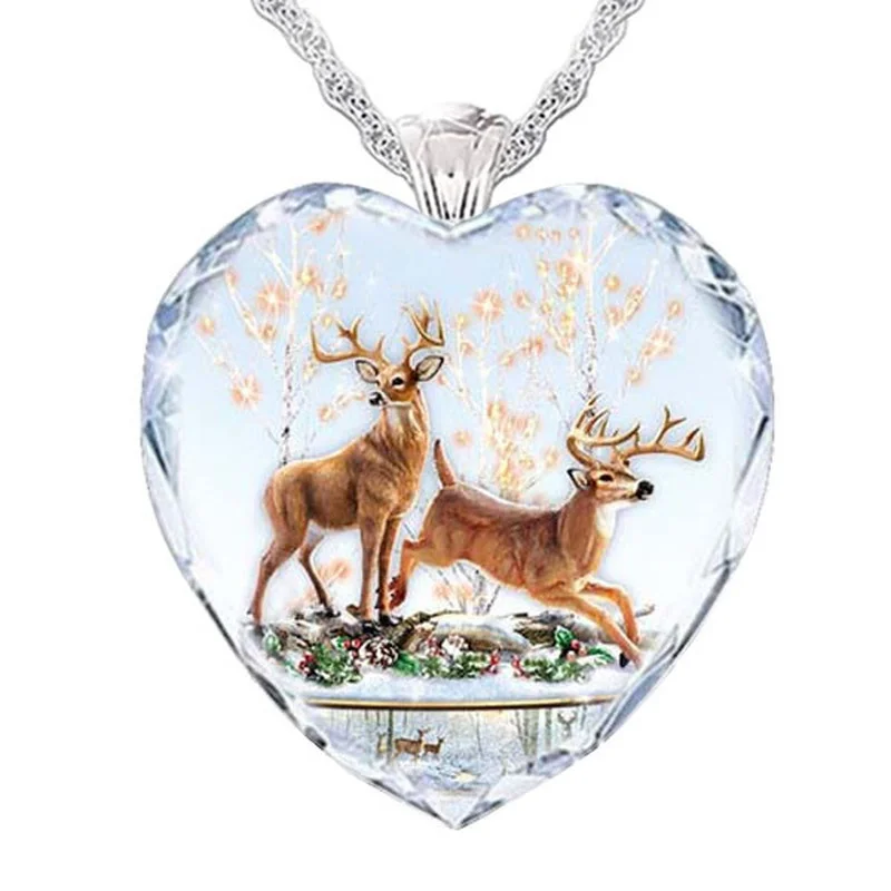 Женские Ювелирные изделия в форме сердца, из хрусталя с изображением леса, новинка ожерелье с подвеской в форме оленя, металлические аксессуары в виде животных, подарки для женщин
