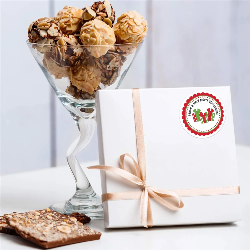 500 шт., рождественские наклейки, круглые этикетки для карт и конвертов