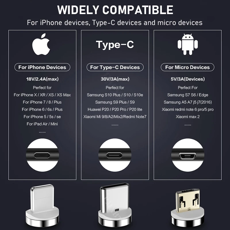 Магнитный Кабельный штекер, Круглый адаптер для быстрой зарядки 3A,...