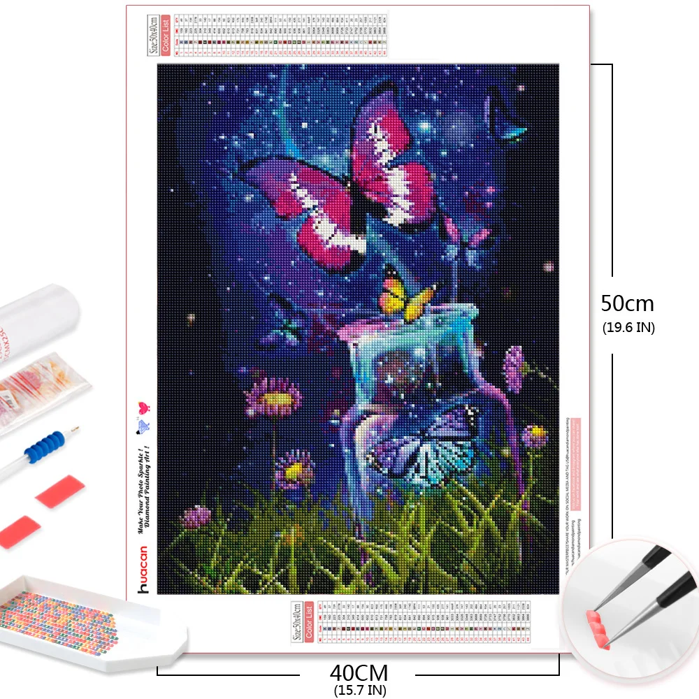 Алмазная 5D картина HUACAN сделай сам, вышивка с изображением животных, бабочек, в виде бутылки желаний, мозаика, декоративные картины для ночного пользования