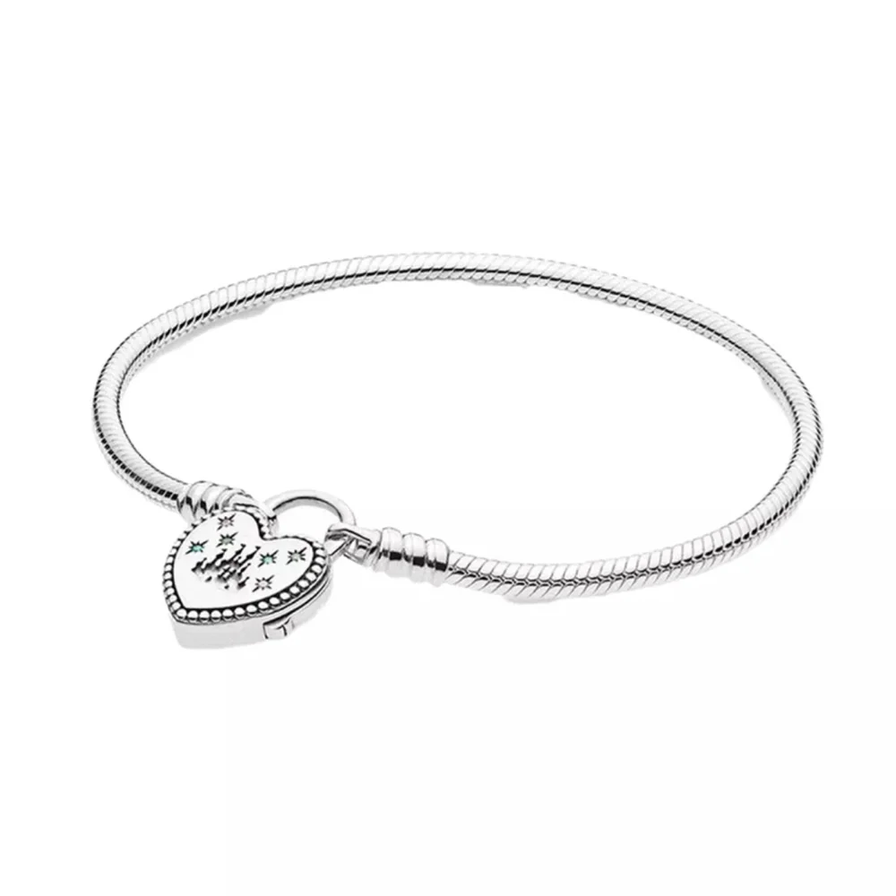 Браслет в виде сердца из серебра 100% пробы, фирменный замок, женский браслет сделай сам, ювелирные изделия для пар, браслет Pandora, рождественский подарок, 925