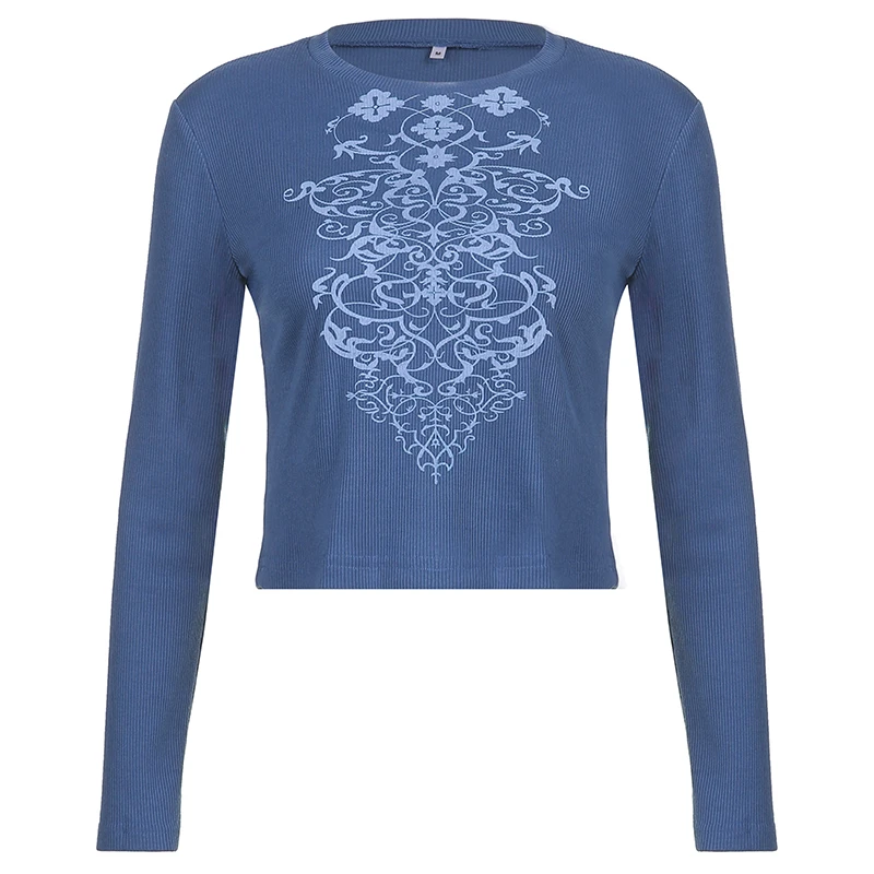 Y2K гранж Fairycore короткие футболки с графическим принтом с длинн...