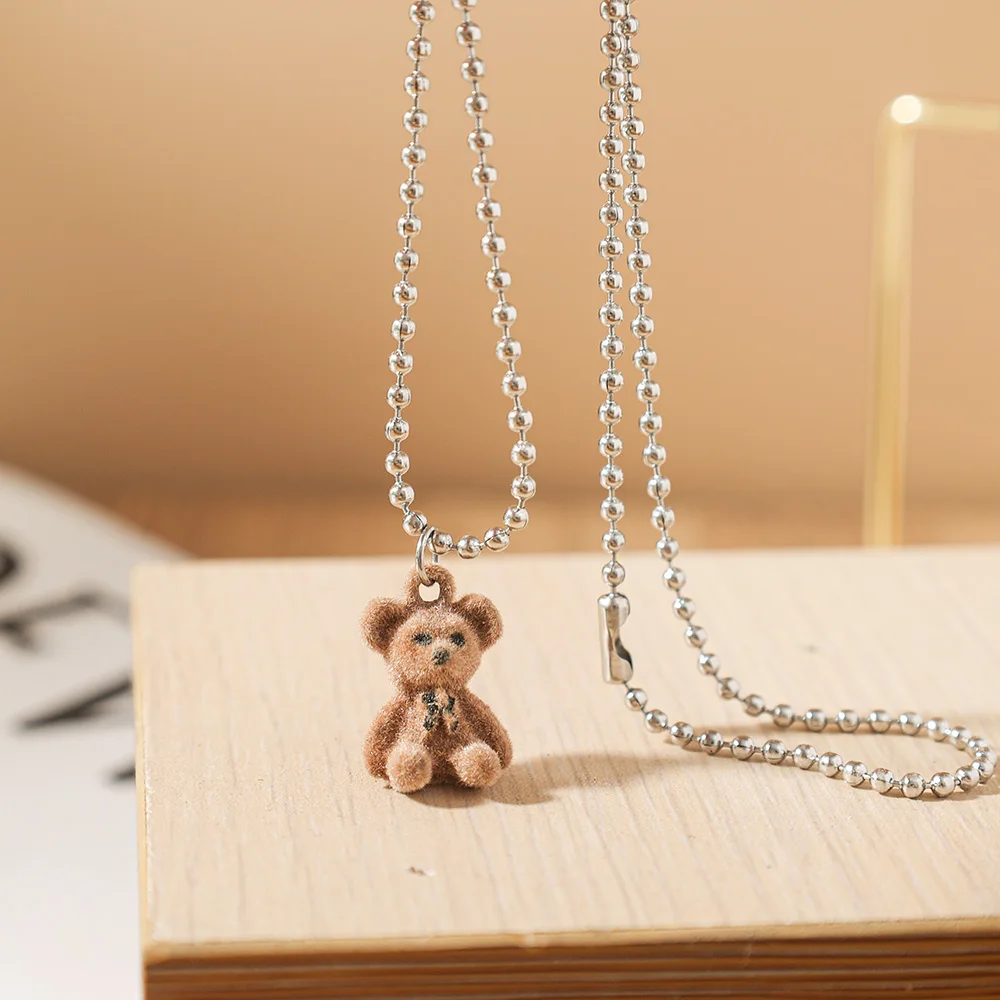 Ожерелье с подвеской в виде симпатичного флокирующего медведя для женщин, девушек, подростков, милые медведи, Очаровательное ожерелье с подвеской в виде животного, женские модные украшения