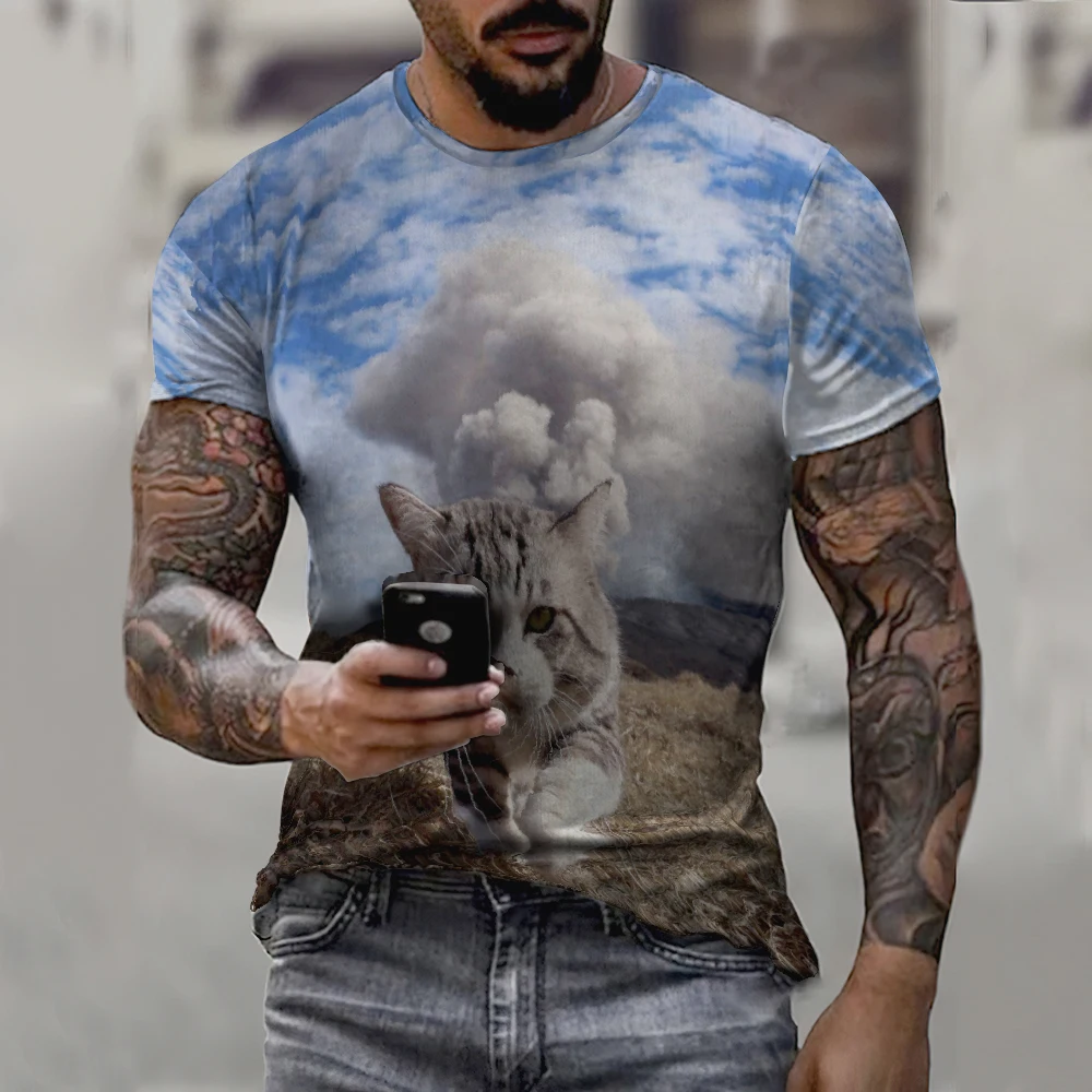 Футболка Мужскаяженская с коротким рукавом, круглым вырезом и 3D-принтом