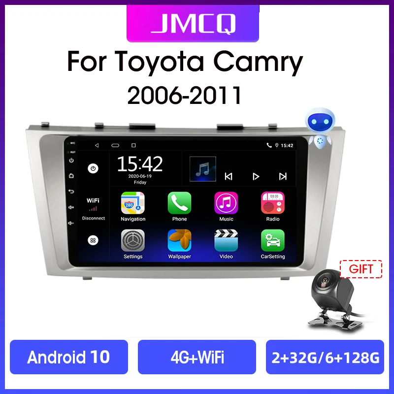 Автомагнитола JMCQ, 2 din, Android 10, 4G, мультимедийный видеоплеер, GPS-навигация для Toyota Camry 40 50 2006-2011, 2 din, dvd-плеер