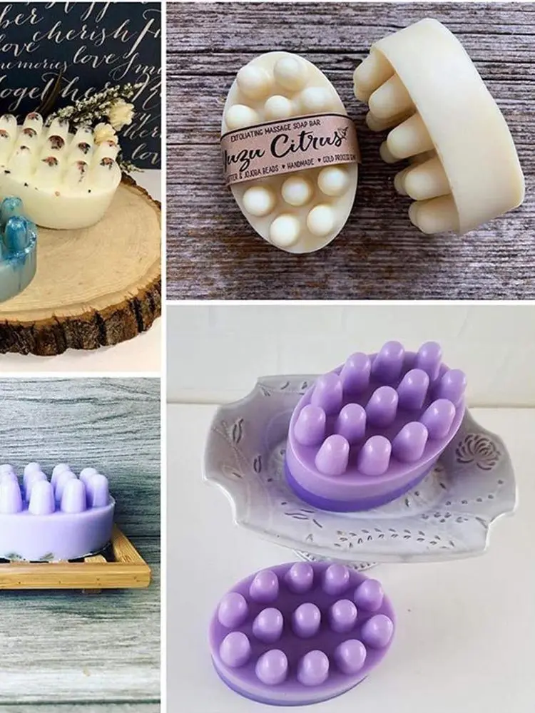 Силиконовые формы для мыла ручной работы, 4 полости, Массажная тера...