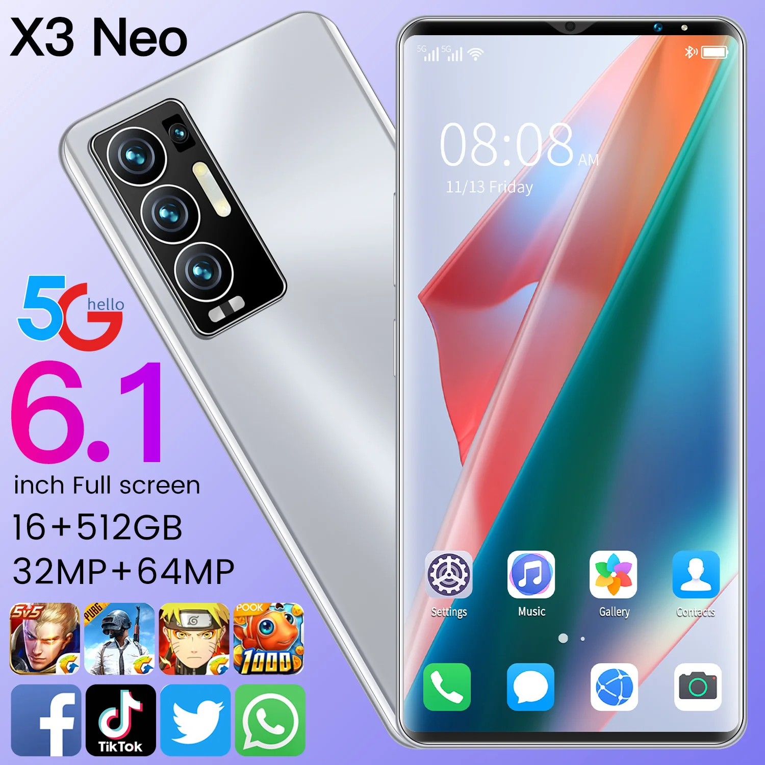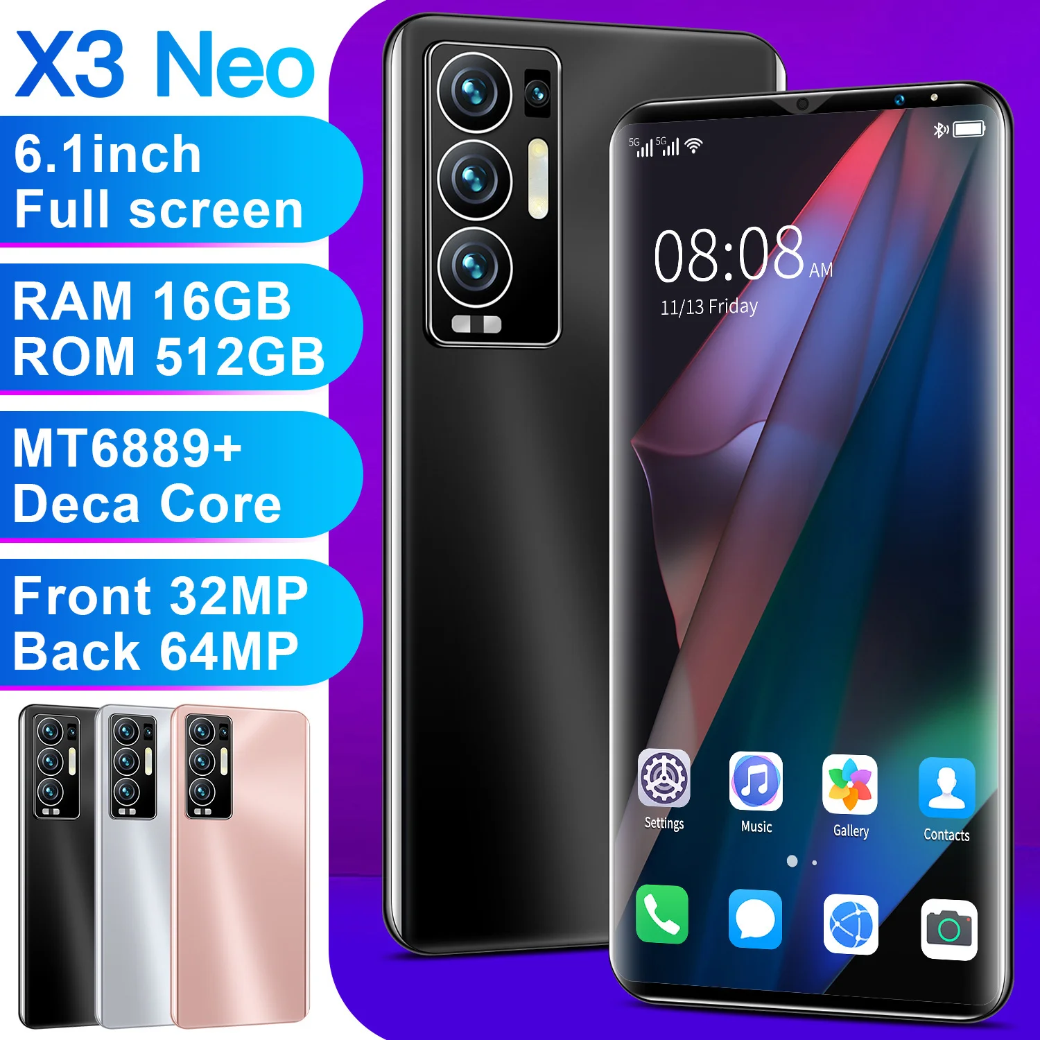 Новинка 2021, модный телефон, полный экран 6,1 дюйма, смартфон 16 ГБ + 512 ГБ для OPPO Find X3 NEO, мобильный телефон Huawei Xiaomi Samsung