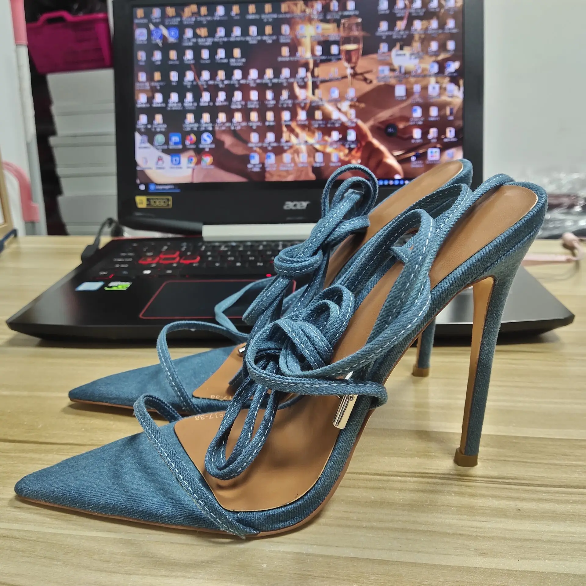 Женские босоножки на тонком высоком каблуке-шпильке с ремешком на щиколотке, привлекательные вечерние туфли с острым носком, летние женские босоножки на шнуровке, женская обувь