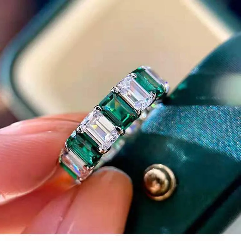 Новое геометрическое полное Стразы, квадратное циркониевое кольцо с зеленым и белым кристаллом, кубический цирконий для женщин, свадебные украшения для невесты