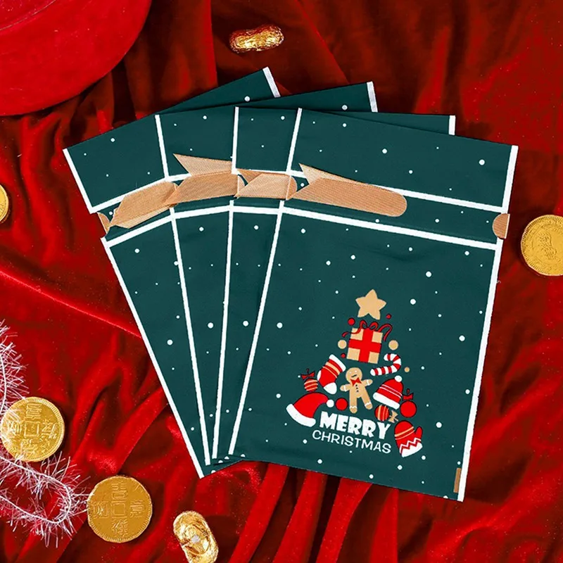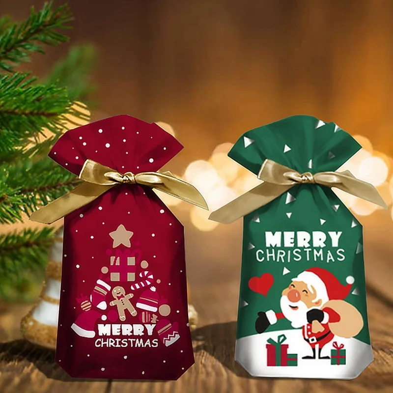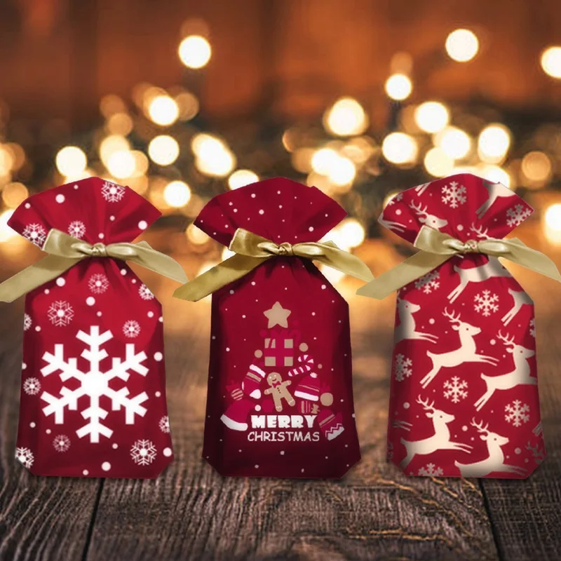 10 шт., пластиковые пакеты на шнурке для рождественской вечеринки