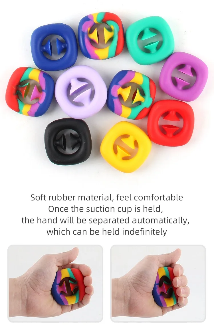 【Упражнения на руки и снятие стресса 】 сжимайте и Защелкните эту резиновую игрушку-непоседу, которая помещается прямо в ладони. Сожмите присоски вместе и отпустите для приятного попса!