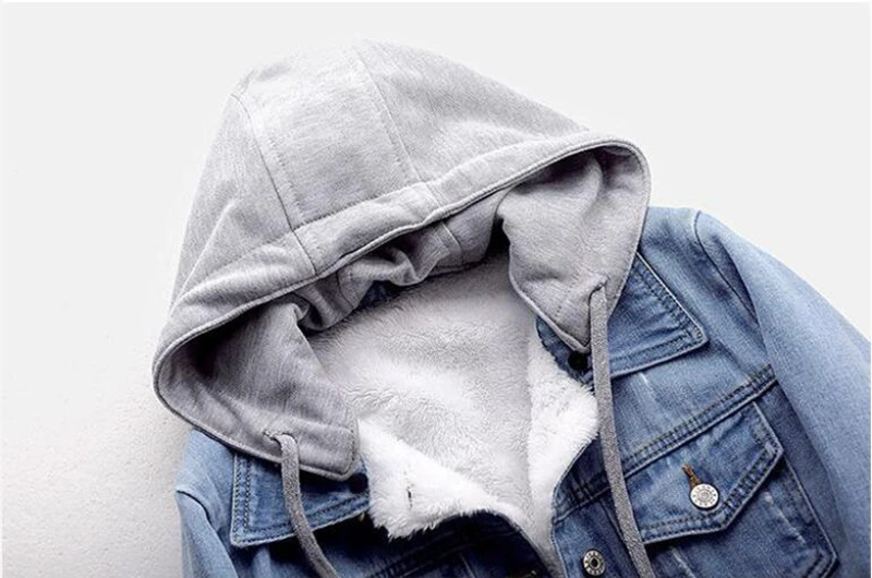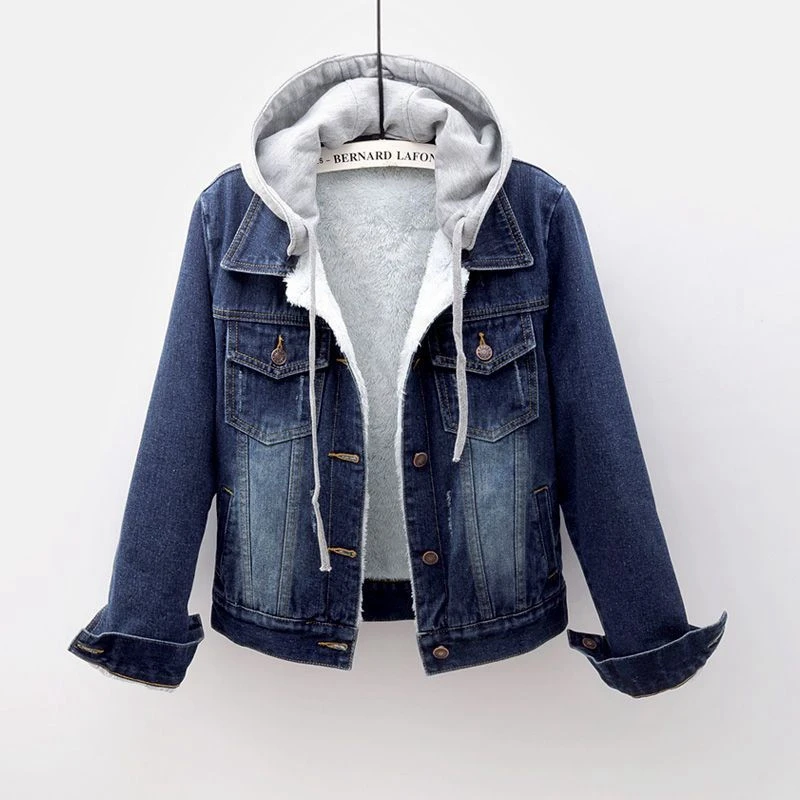 Женская джинсовая куртка, теплая зимняя повседневная куртка-бомбер с капюшоном, ковбойская куртка, модная винтажная синяя джинсовая куртка с флисовой подкладкой