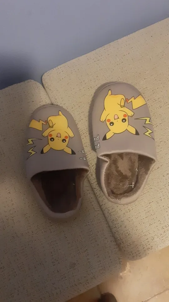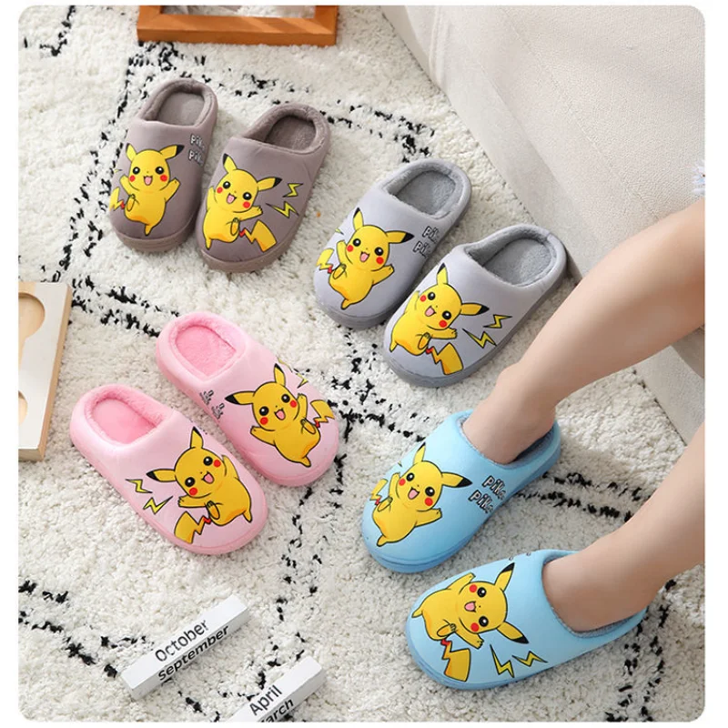 Зимние тапочки с покемоном Пикачу, детские меховые тапочки для маленьких девочек и мальчиков, хлопковые домашние тапочки, теплые пушистые домашние тапочки для детей