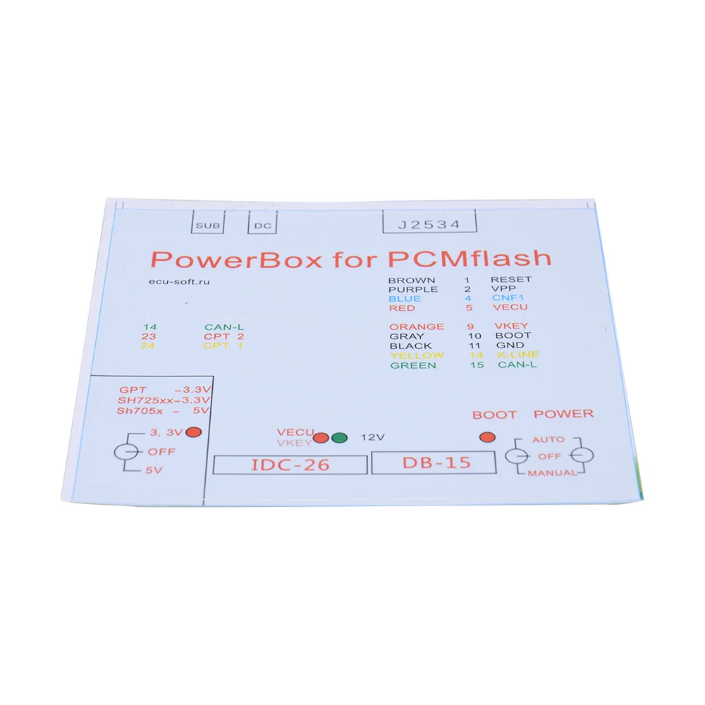 Контроль мощности. Инструмент имеет три режима питания к ЭБУ: Выкл позволяет удалить все сигналы питания и управления из IDC-26 и DB-15 разъемов; поставка с инструкцией питания на терминалы VECU и VKEY и на контрольные выходы в зависимости от выбранной тактики; Автоматическое, автоматическое управление, В этом режиме питание контролируется программой загрузки с L-Line сигналом (15 pin OBD-II).