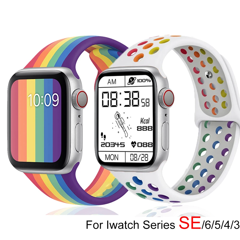 Ремешок Pride Edition для Apple watch Band 40 мм 44 мм 42 мм 38 мм, спортивный силиконовый Воздухопроницаемый браслет для iwatch series SE 6 5 4 3