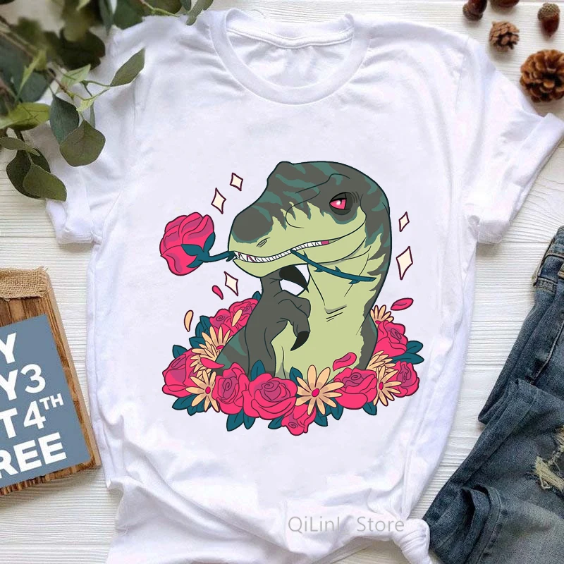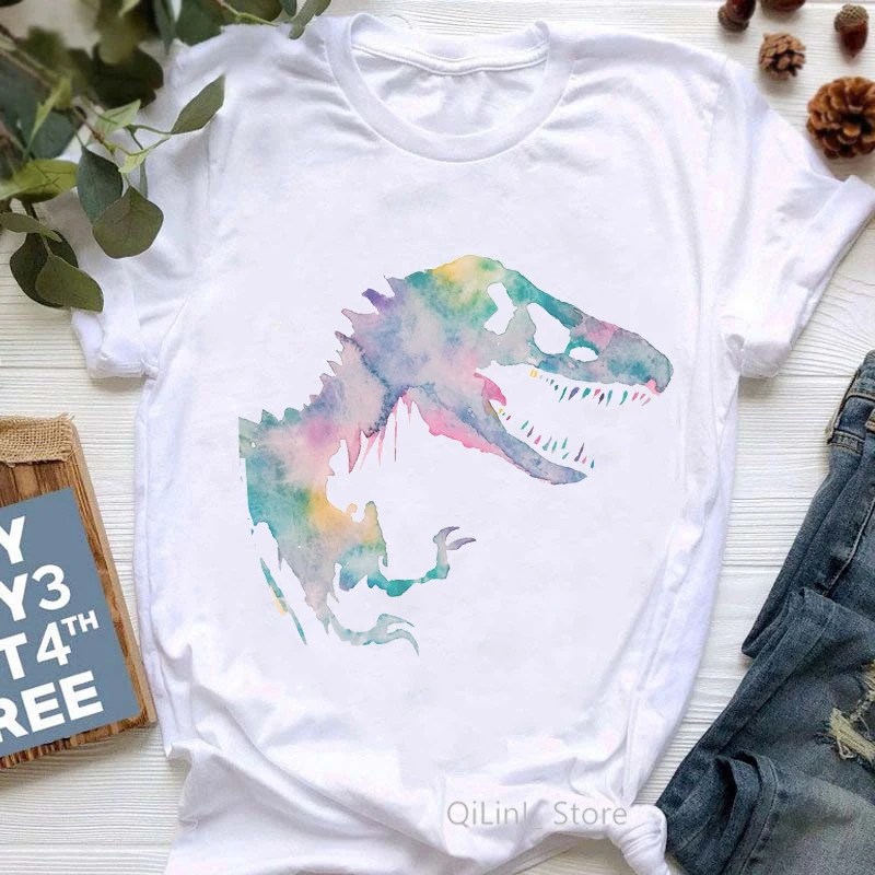 Футболка женская с акварельным принтом динозавров и животных, топ с коротким рукавом в стиле парка Юрского периода, белая рубашка с принтом животных, футболка с паровой волной, на лето