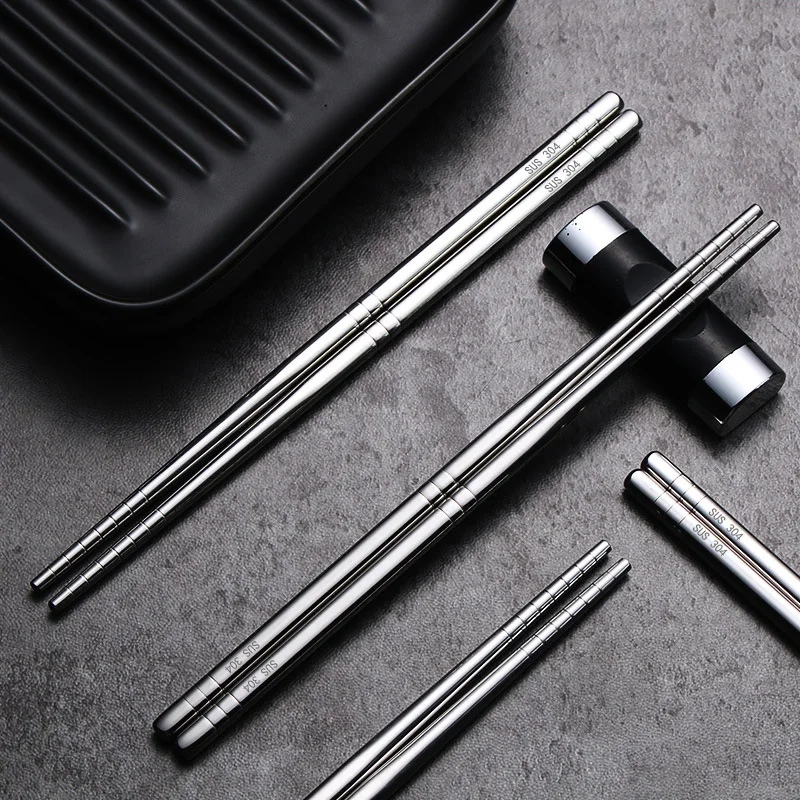 5 пар металлических палочек для еды, домашние высокотемпературные стерилизуемые Нескользящие палочки для еды из нержавеющей стали, набор кухонных аксессуаров