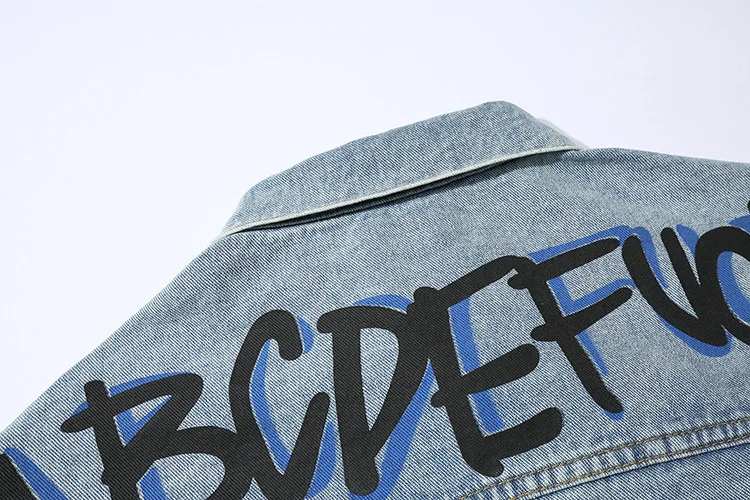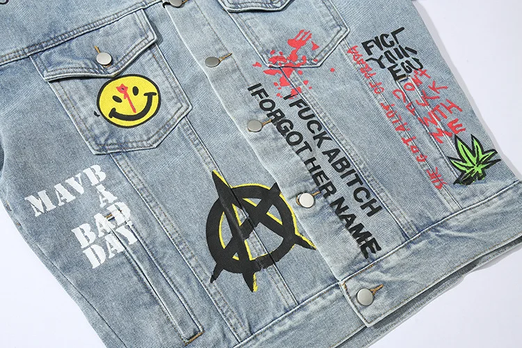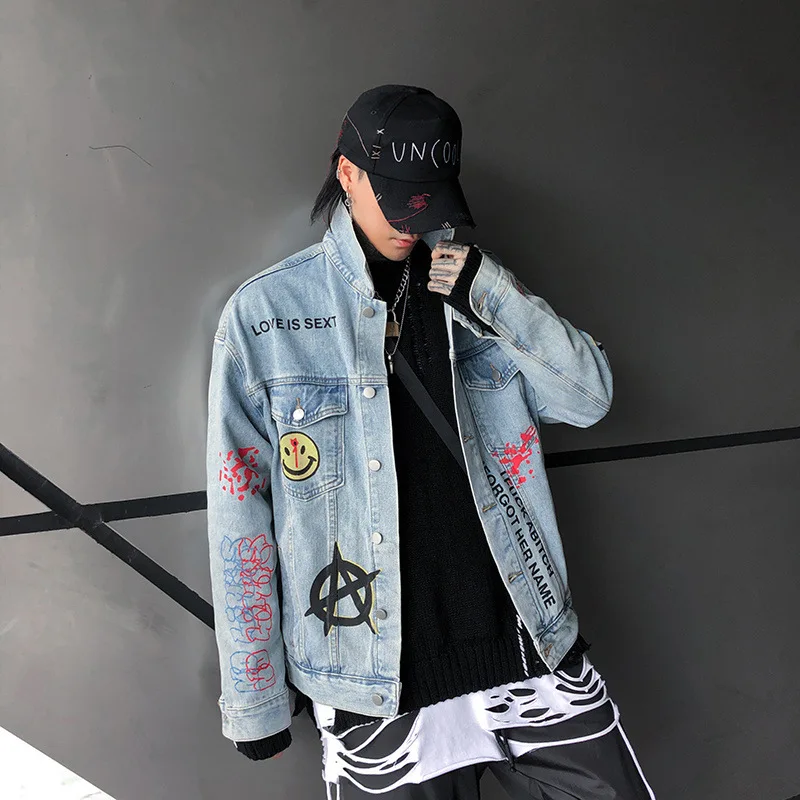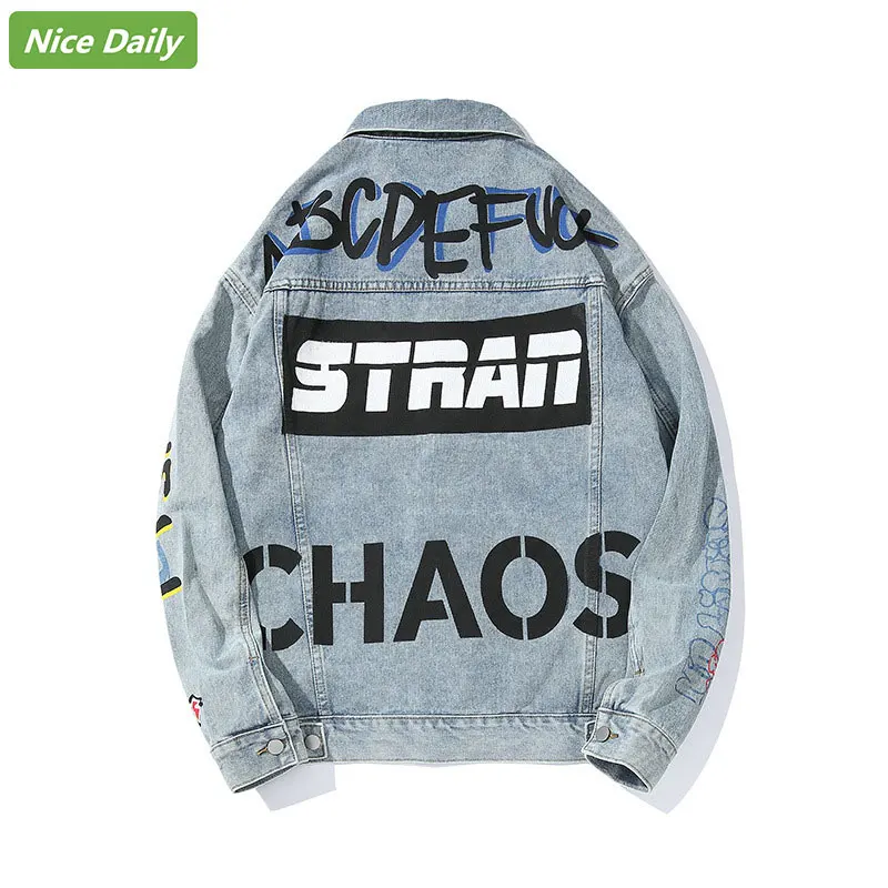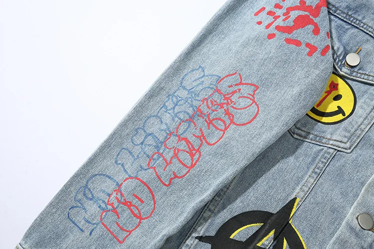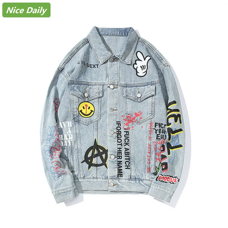 Куртка NiceDaily Мужская джинсовая, хлопковая однобортная Свободная куртка в стиле хип-хоп с граффити, потертая водоотталкивающая верхняя одежда в стиле оверсайз, на осень