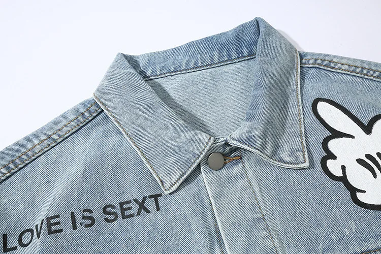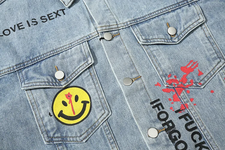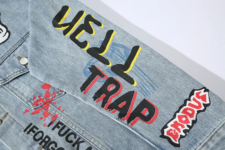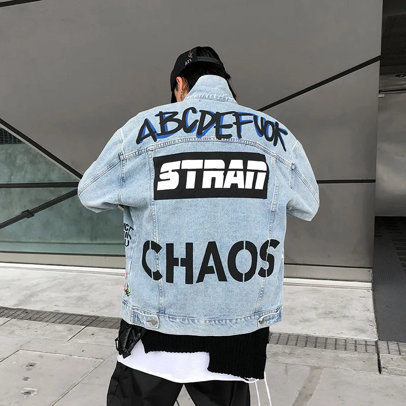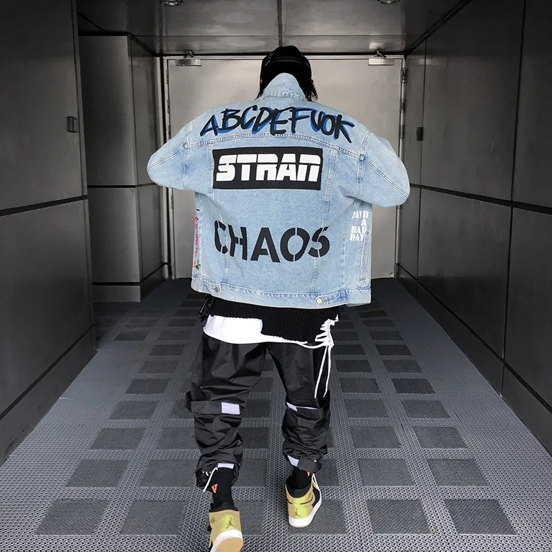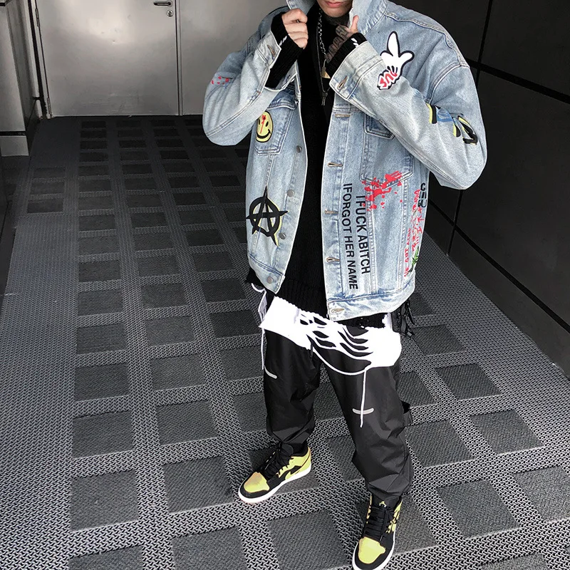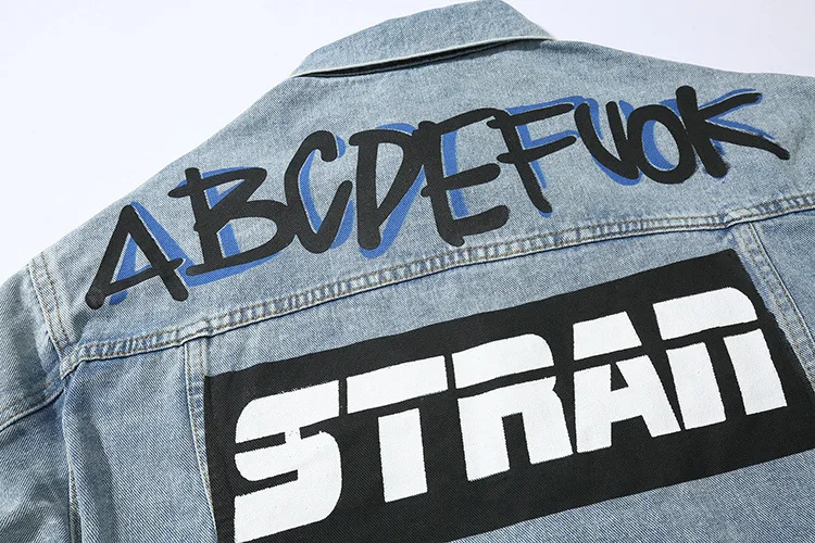 Куртка NiceDaily Мужская джинсовая, хлопковая однобортная Свободная куртка в стиле хип-хоп с граффити, потертая водоотталкивающая верхняя одежда в стиле оверсайз, на осень