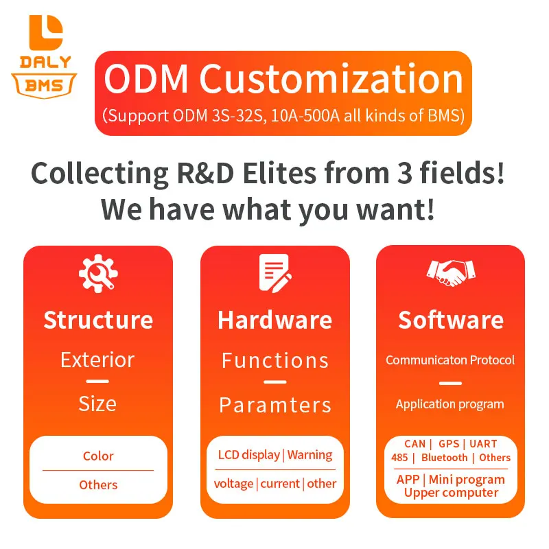 ◆Для той же модели, его ток заряда меньше, чем ток разряда, потому что Daly PCBAs были обновлены, чтобы хорошо защитить батарею клиента.