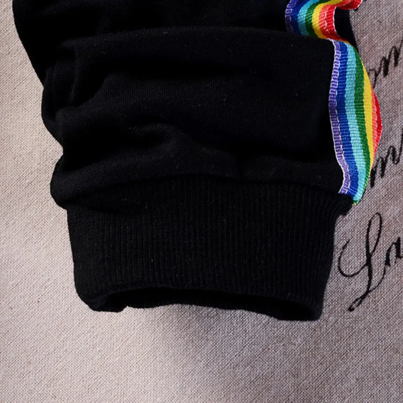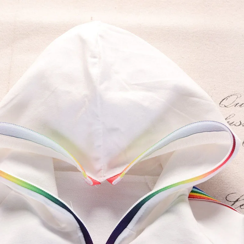 Комплект одежды Одежда для мальчиков и девочек модный спортивный комплект из двух предметов с радужной отделкой, свитер с капюшоном, куртка + штаны Качественная детская одежда