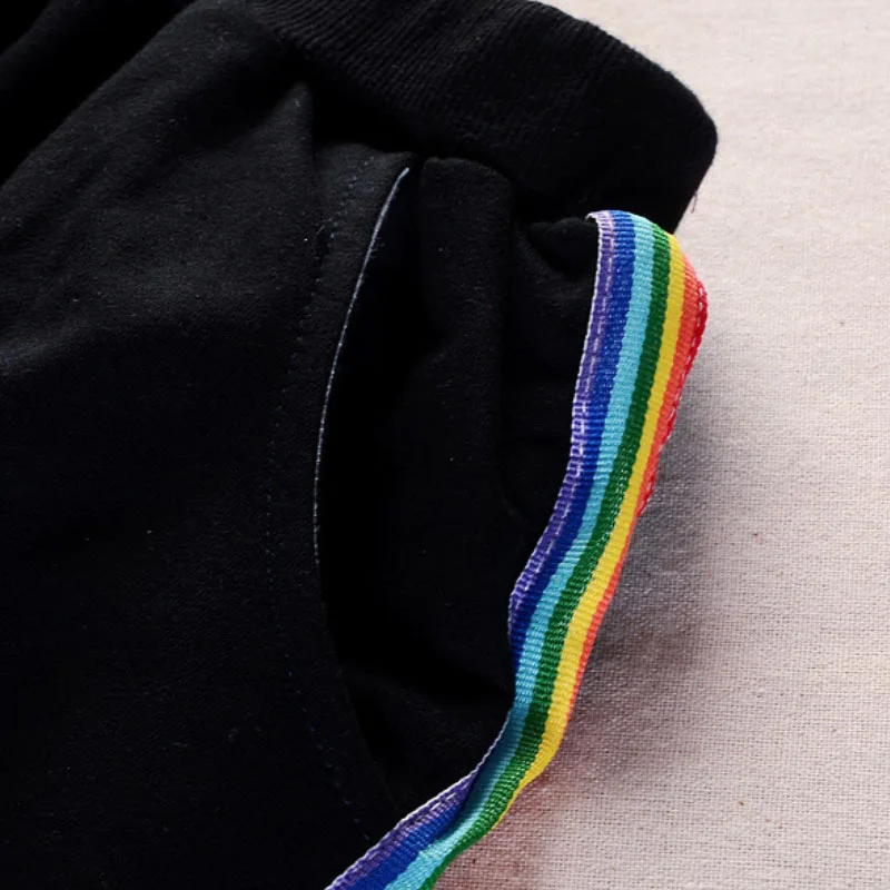 Комплект одежды для мальчиков и девочек, модная спортивная одежда из двух предметов с радужной отделкой, свитер с капюшоном, куртка + штаны, качественная детская одежда