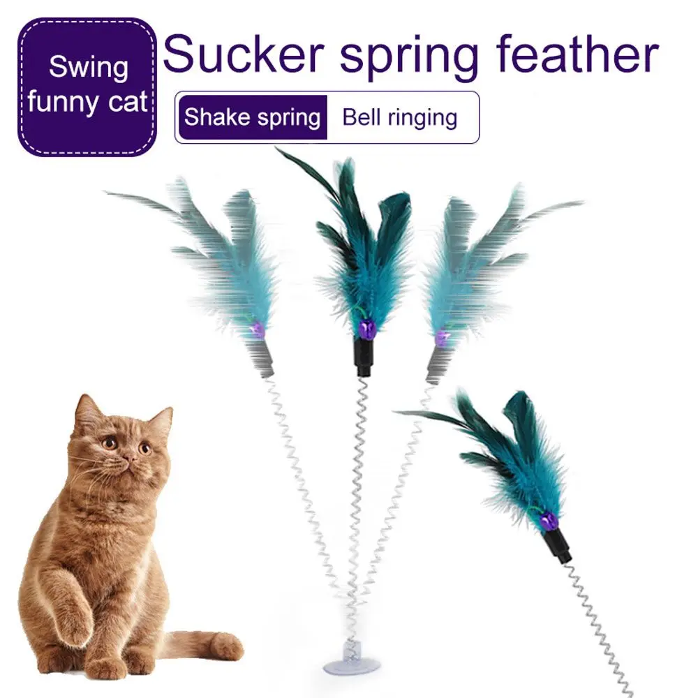 Игрушки для кошек, перьевая палочка, Весенняя присоска с колокольчи...
