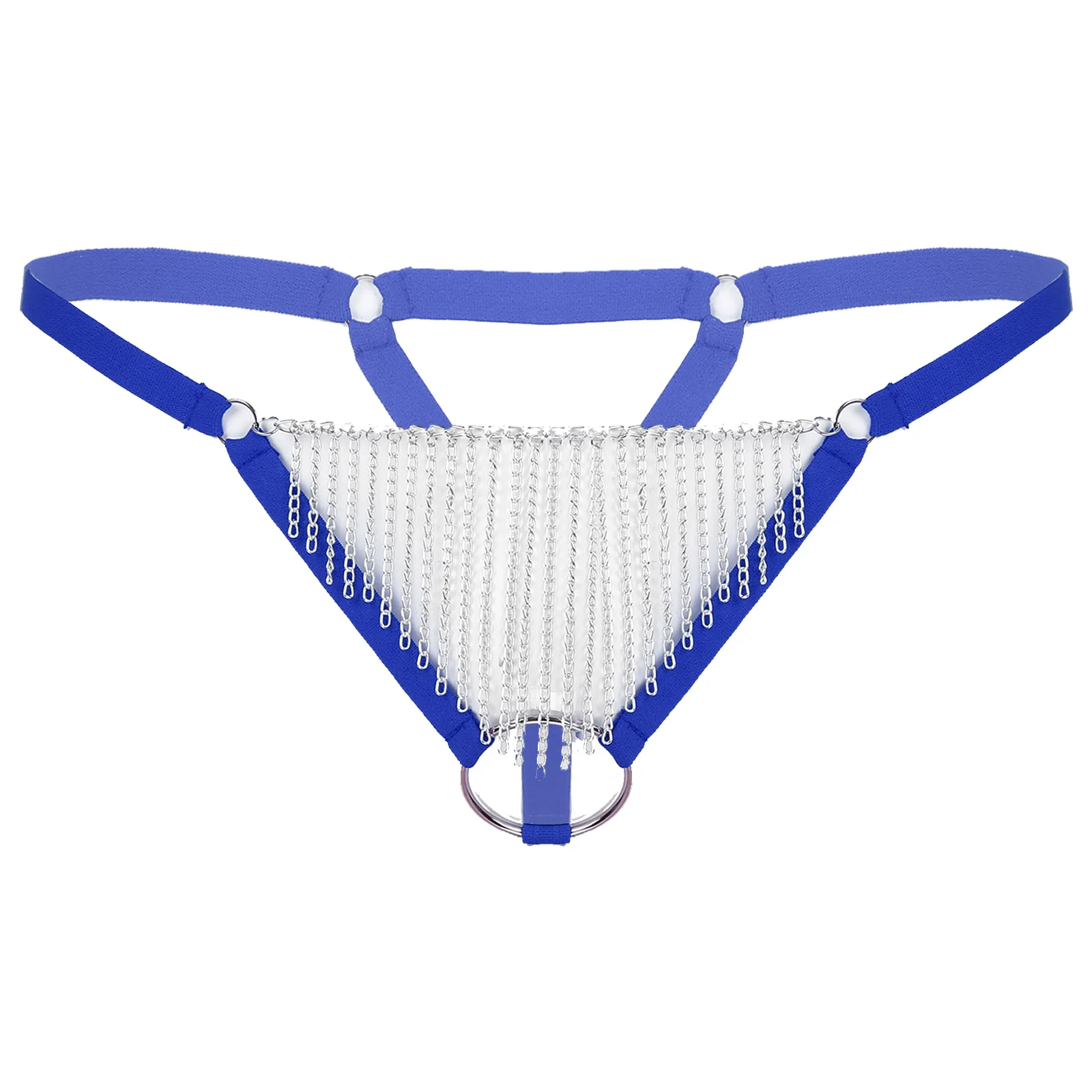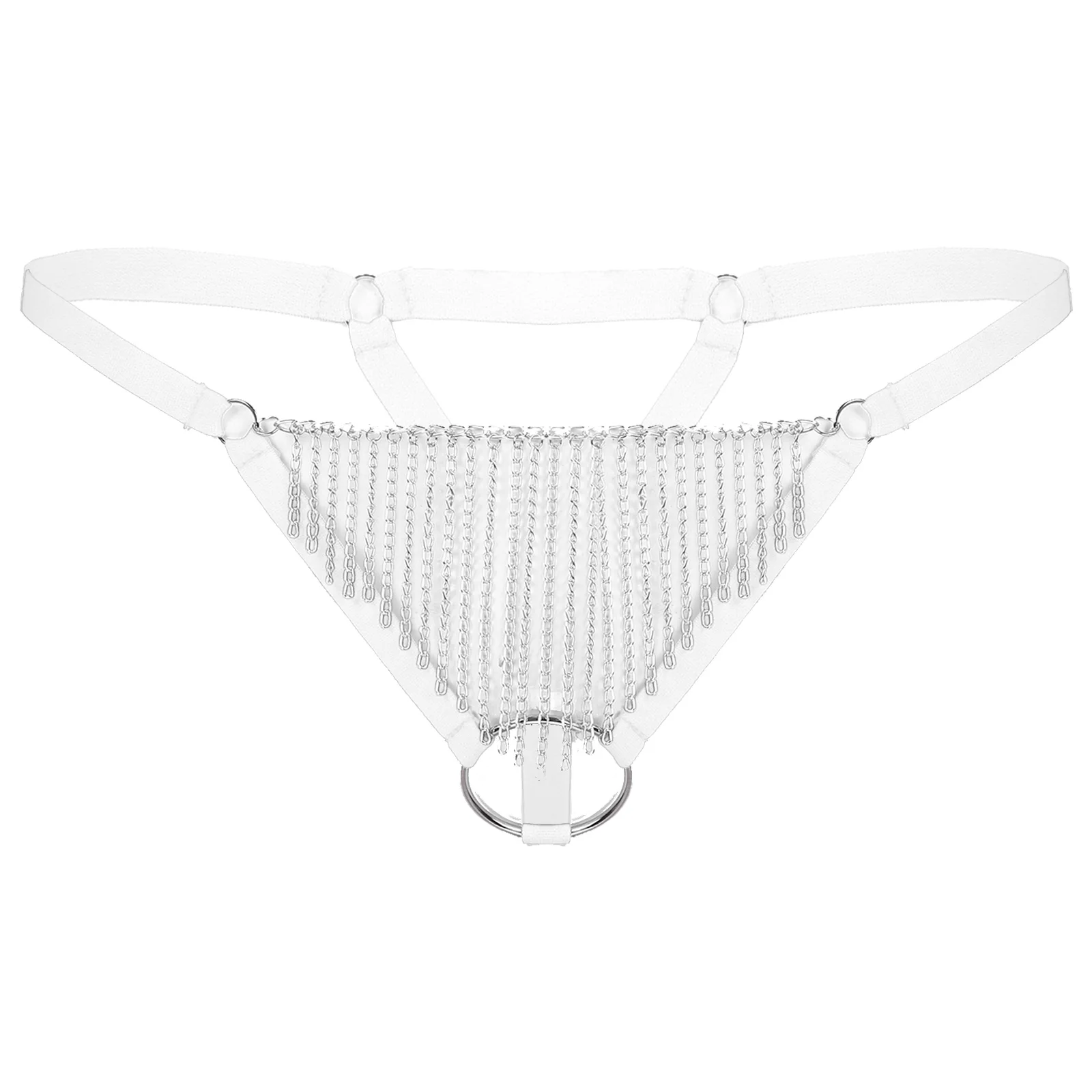 Мужские трусики с кисточками и металлической цепочкой, кружевные сексуальные трусики без косточек, стринги с низкой посадкой, эластичный пояс с бахромой, стринги