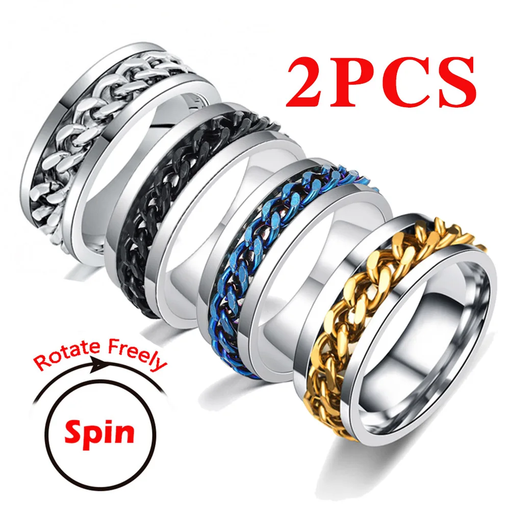 2 шт., мужские кольца-Спиннеры из нержавеющей стали