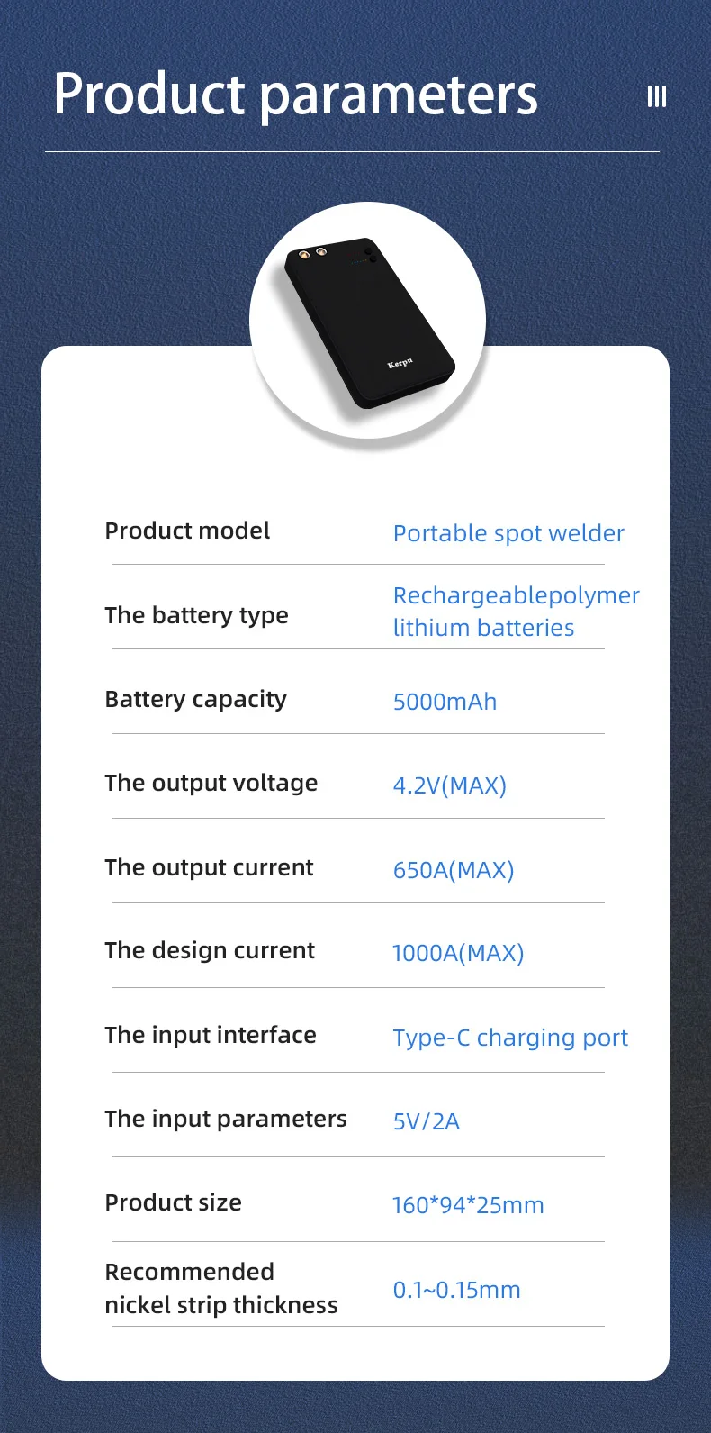 Портативный точечный сварочный аппарат с 6 регулируемыми шестернями, 5000 мАч, Lipo, включает в себя точечную сварочную машину с никелевой полосой макс. 0,15 ММ, 18650, 21700