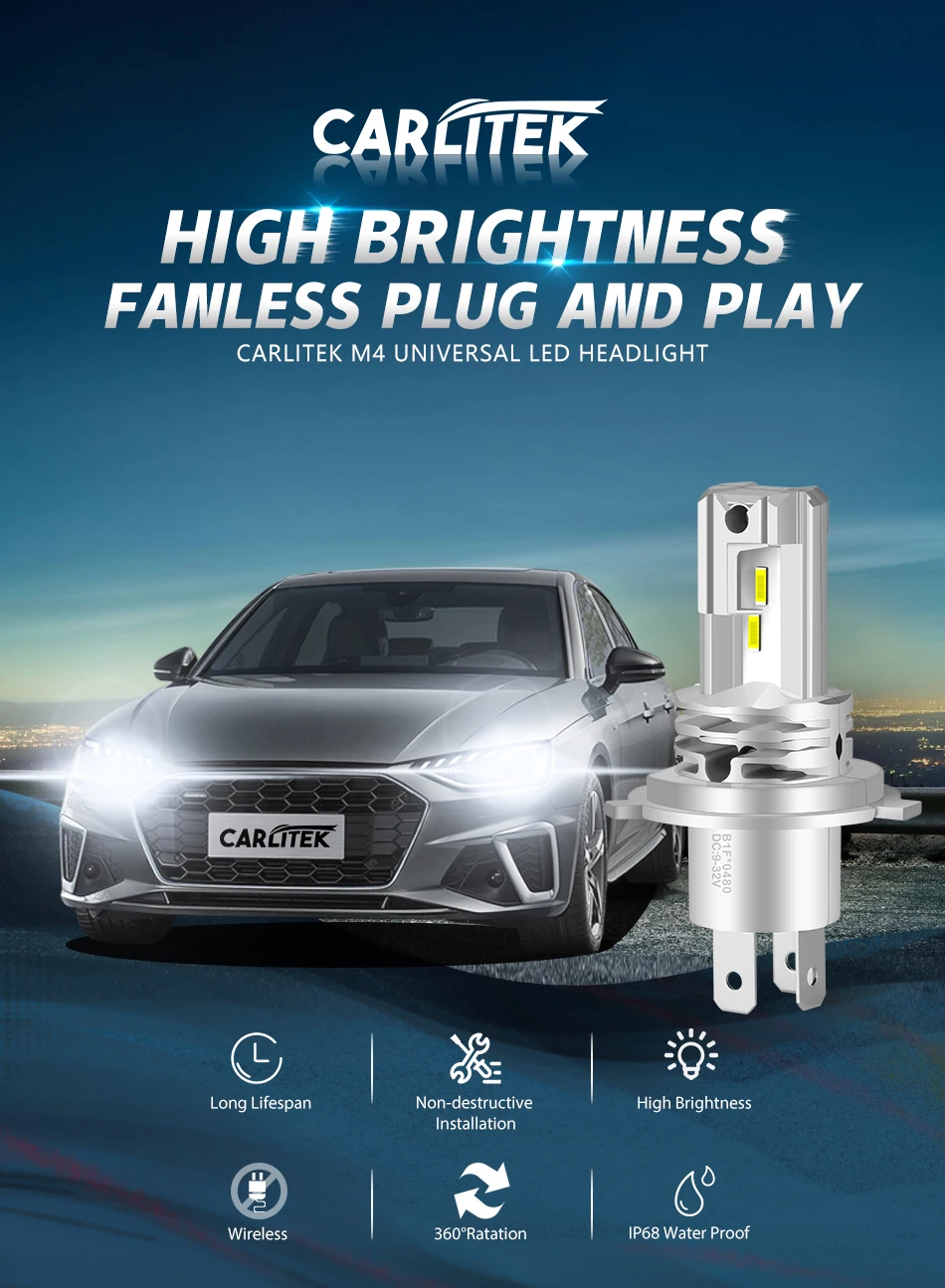 Светодиодсветодиодный лампы для фар CARLitek, 360 луч, H1 H4 H11 H7...