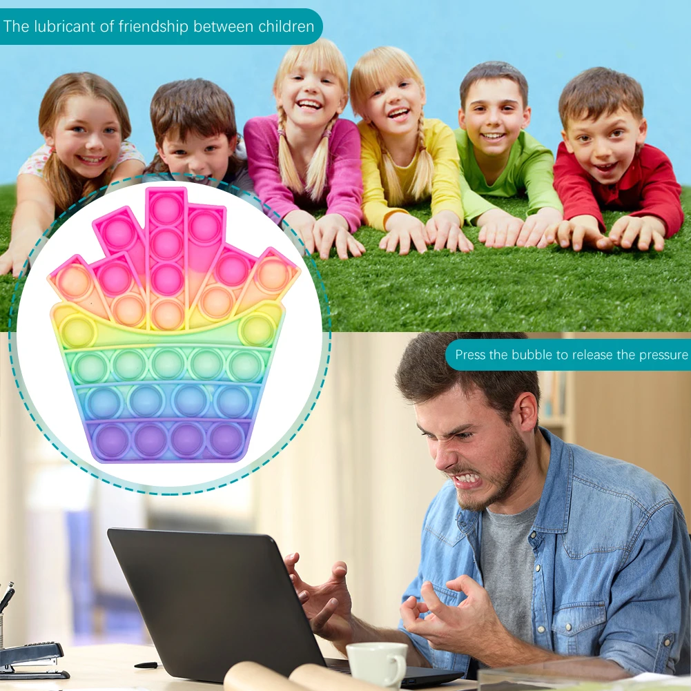 1. Эта игрушка с пузырьками-отличная сенсорная игрушка, вы можете нажимать ее снова и снова, чтобы поднять ее. Повторяя одно действие, чтобы помочь детям и взрослым в состоянии высокого стресса или тревоги снять и снять стресс, эти игрушки очень подходят для офисов, домов, церкви, библиотеки, станций, специальные учебные классы, физиотерапевтические комнаты и сенсорные комнаты и путешествия.