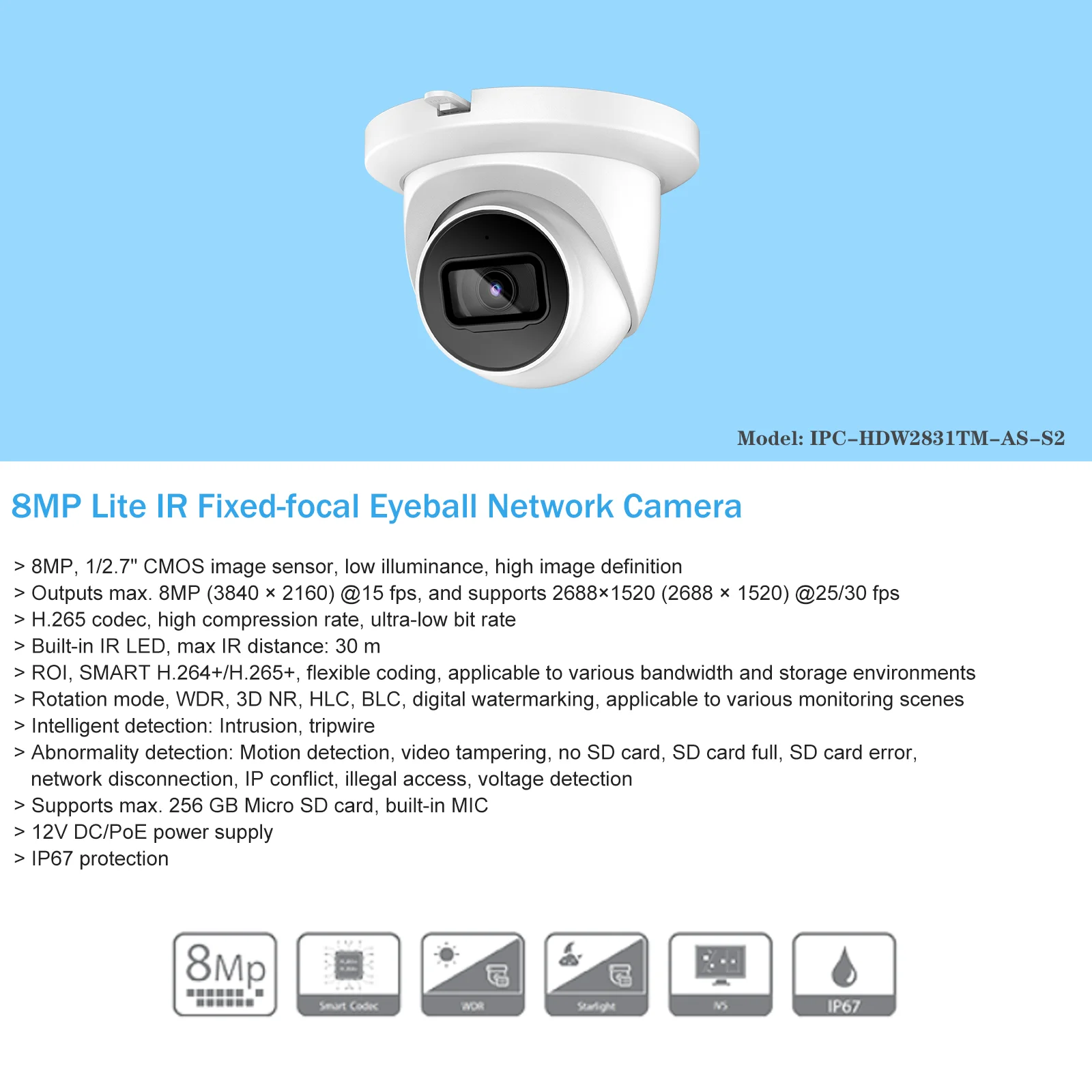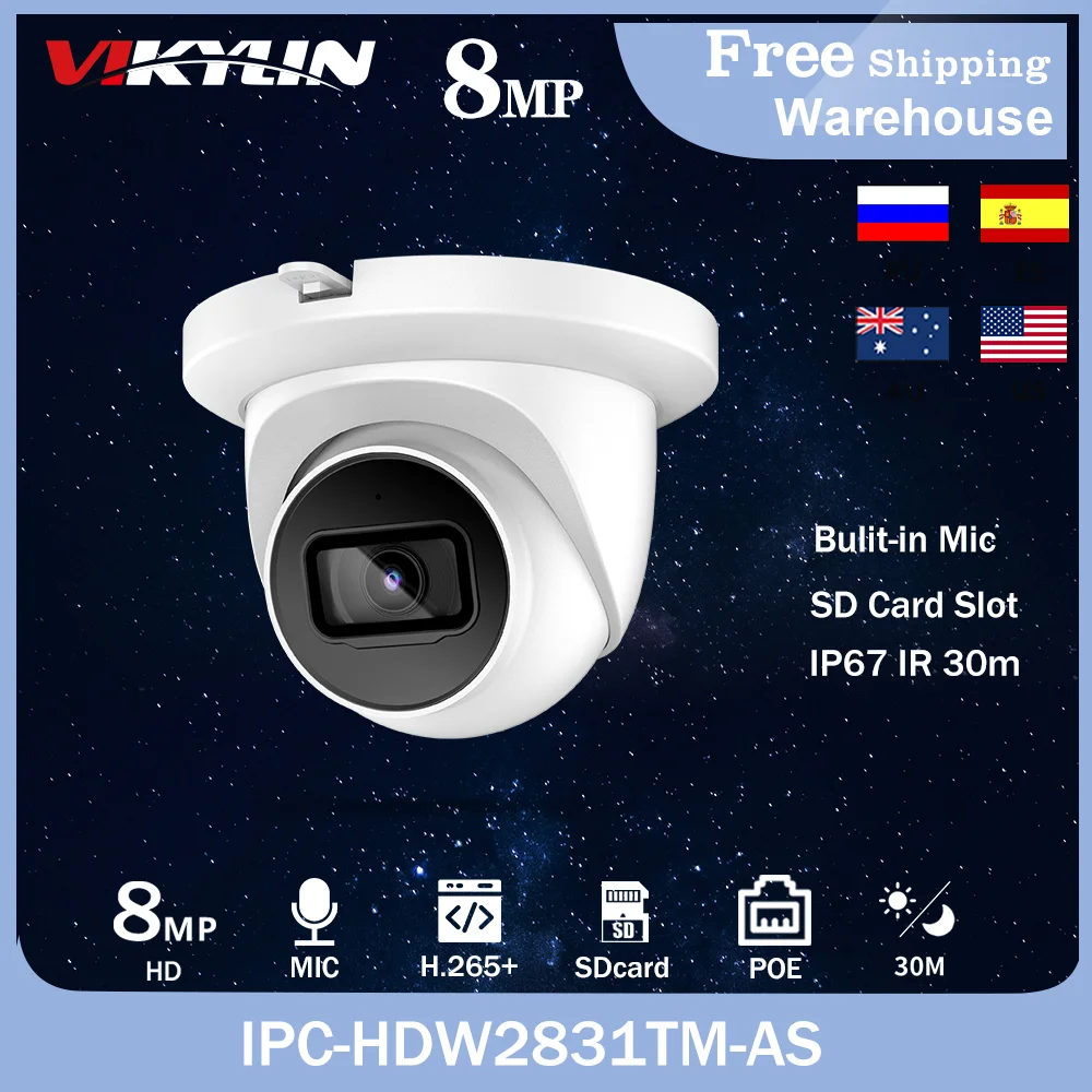Видеокамера видеонаблюдения VIKYLIN 8MP IPC-HDW2831TM-AS-S2 4K IP купольная камера H.265 + Встроенный микрофон SD карта Starlight CCTV Oudtdoor
