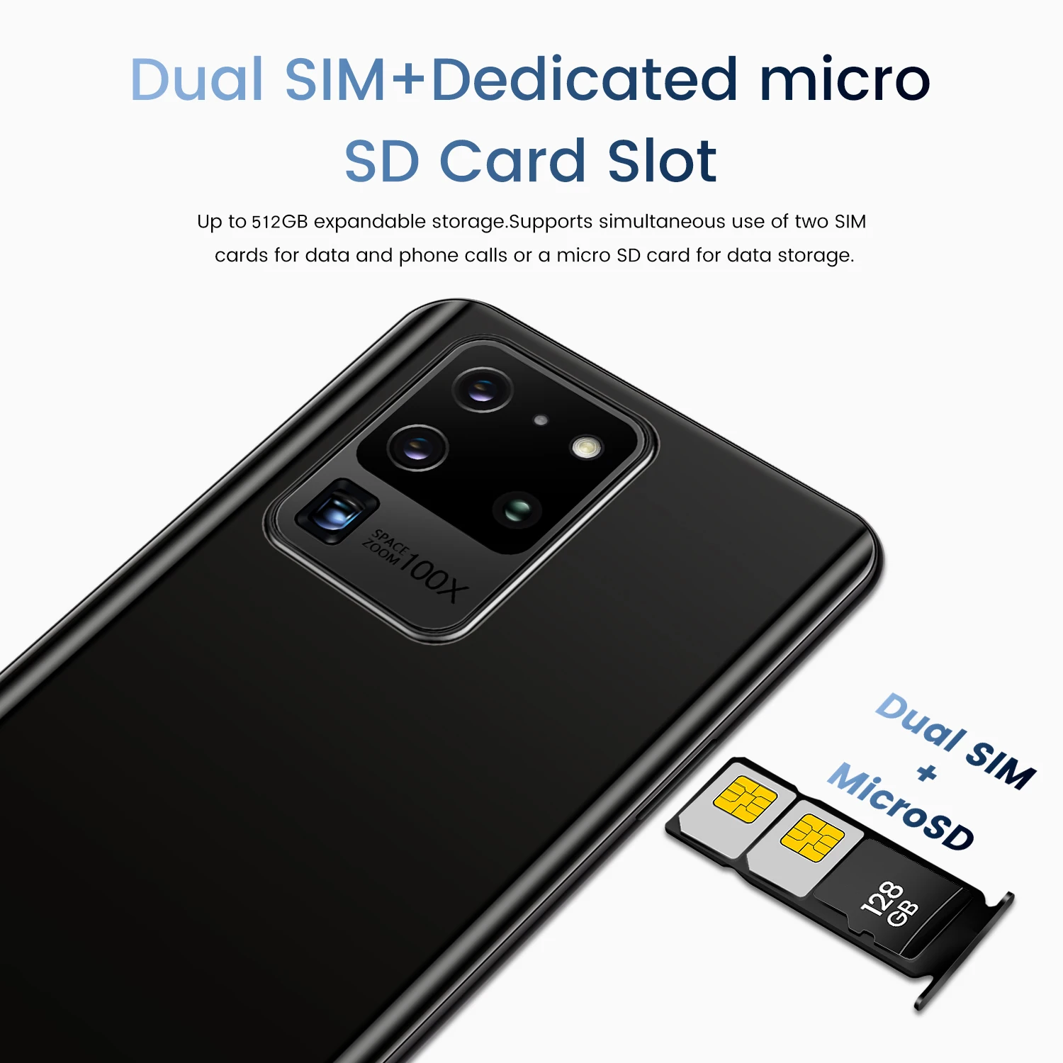 SIM/TF:2 слота для sim-карт (Nano SIM) + 1 слота для tf-карт (максимальная поддержка расширения 256 ГБ)