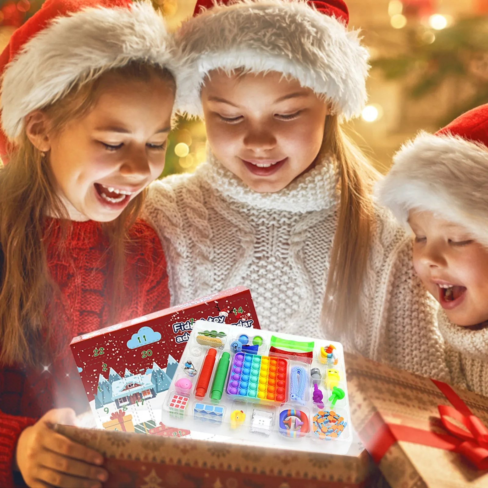 Высококачественные и безопасные игрушки для взрослых и детей-подарочные календарные игрушки изготовлены из качественного пластика. Подходит для взрослых и детей старше 3 лет. Набор пальцев изготовлен из безопасного материала. Игрушки Fidget помогают снять стресс, успокоить нервы и улучшить концентрацию у детей и взрослых.