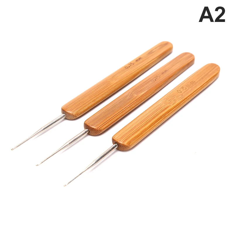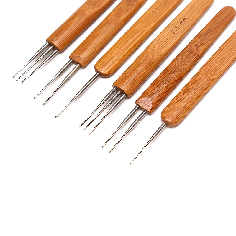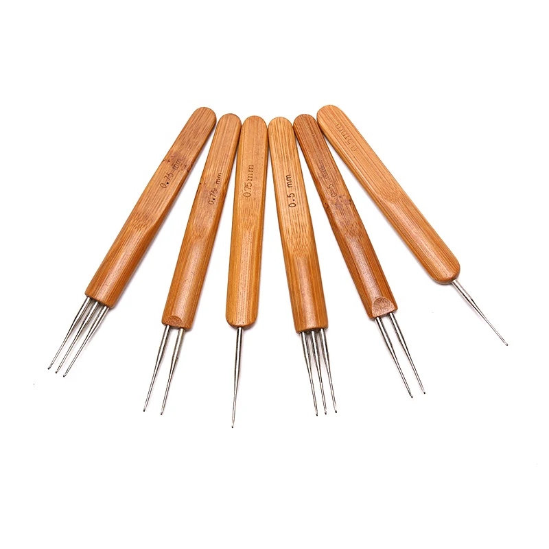 Специально разработан для дредов, дредлок крючком.Мягкая на ощупь ручка, сделанная из бамбука, 0,75 мм и 0,5 мм Диаметр иглы