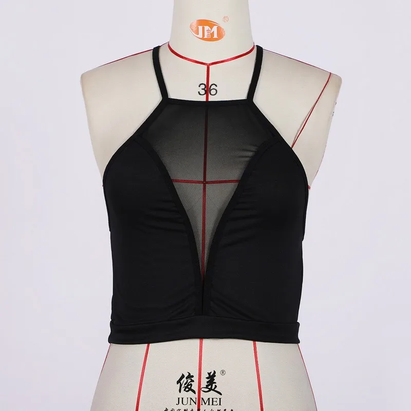 Сексуальный сетчатый укороченный топ, летний Женский Повседневный Топ без рукавов, спортивный укороченный топ, рубашка, прозрачный укороченный топ