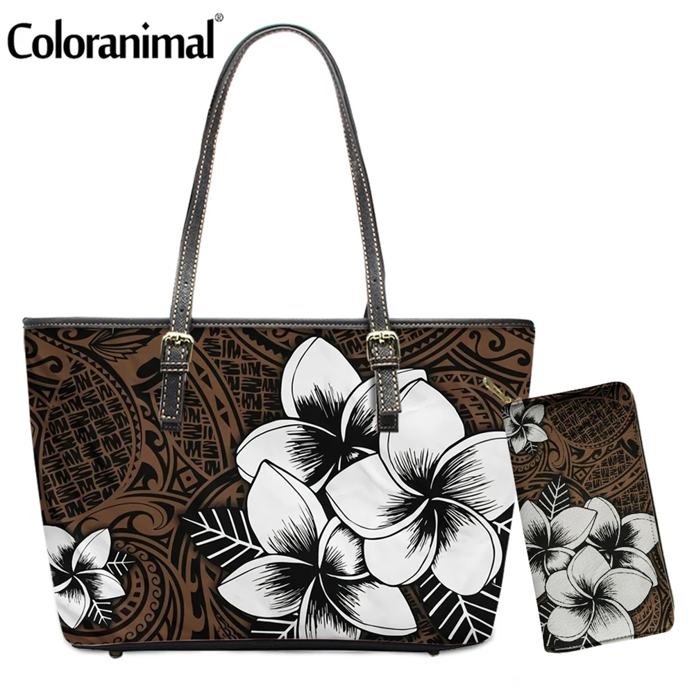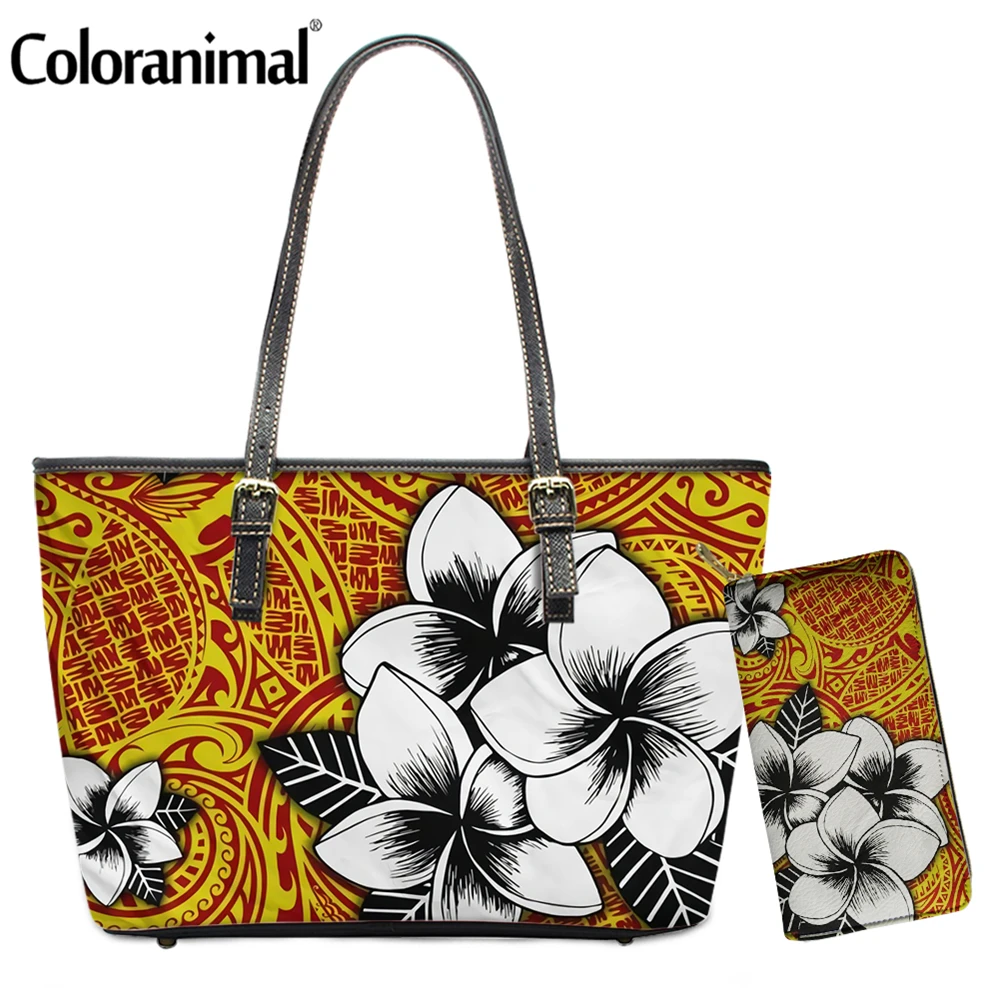 Женская кожаная повседневная сумка-тоут Coloranimal 2021, ГАВАЙСКАЯ ПЛЮМЕРИЯ племя, полинезийская сумка через плечо с принтом для леди, комплект из 2 сумок на плечо