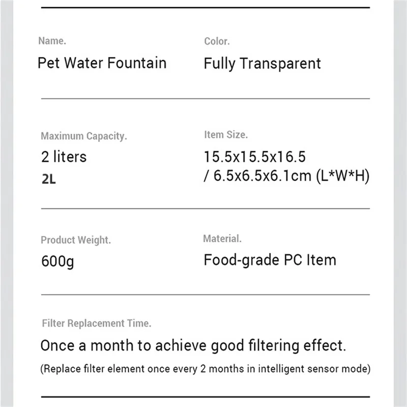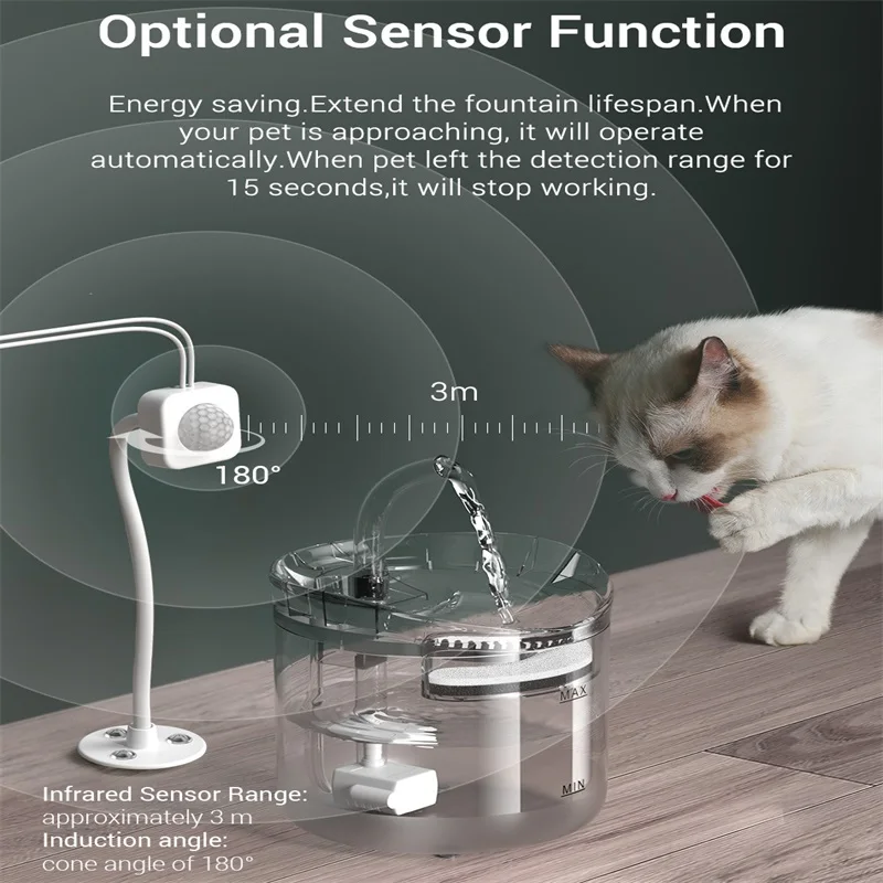 Поилка-фонтанчик для кошек, 61 унция1,8 л, с автоматическим датчиком