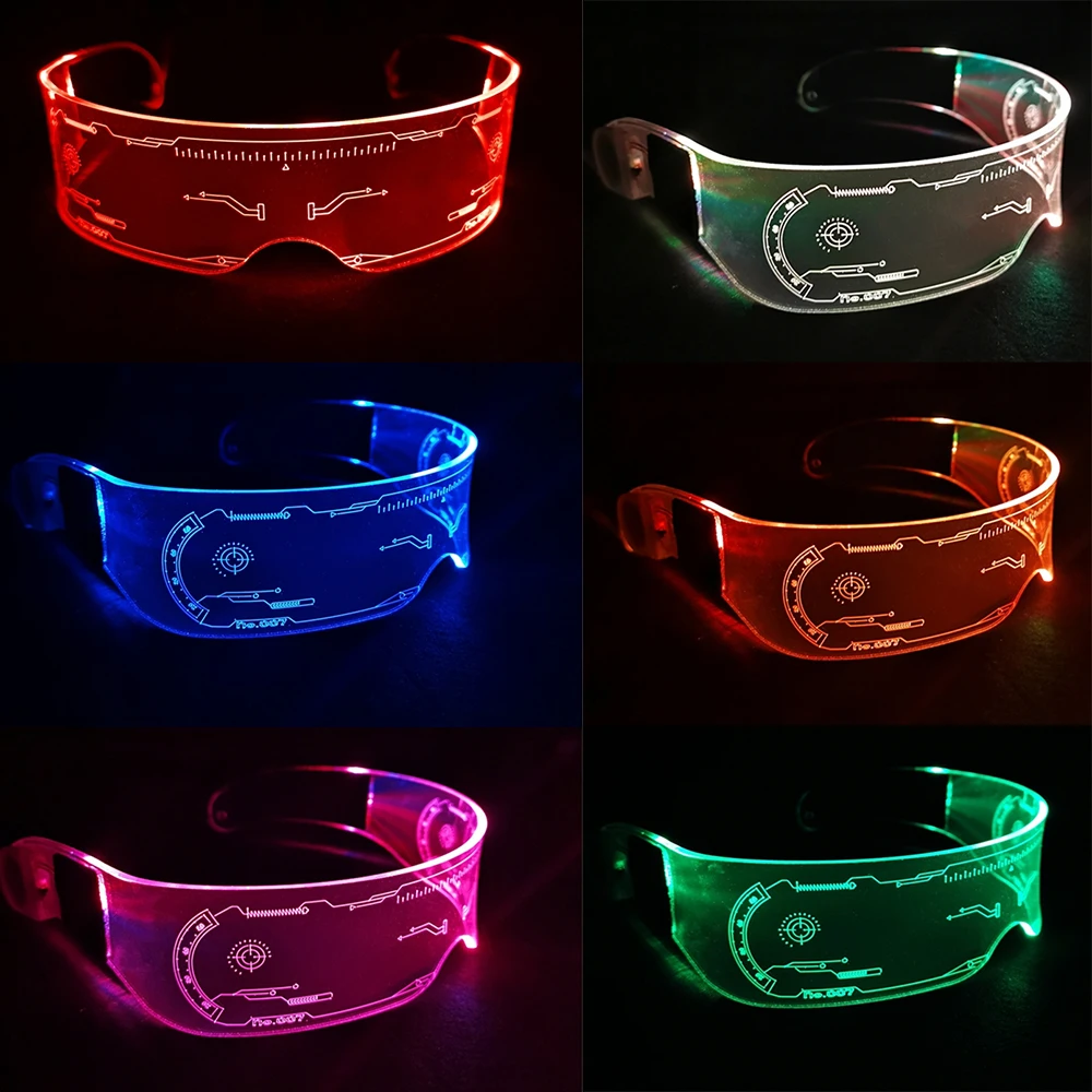 Декоративные очки в стиле киберпанк, 7 цветов, красочные светящиеся очки, очки со светодиодсветильник кой для бара, КТВ, Хэллоуина, вечевечерние в стиле киберпанк