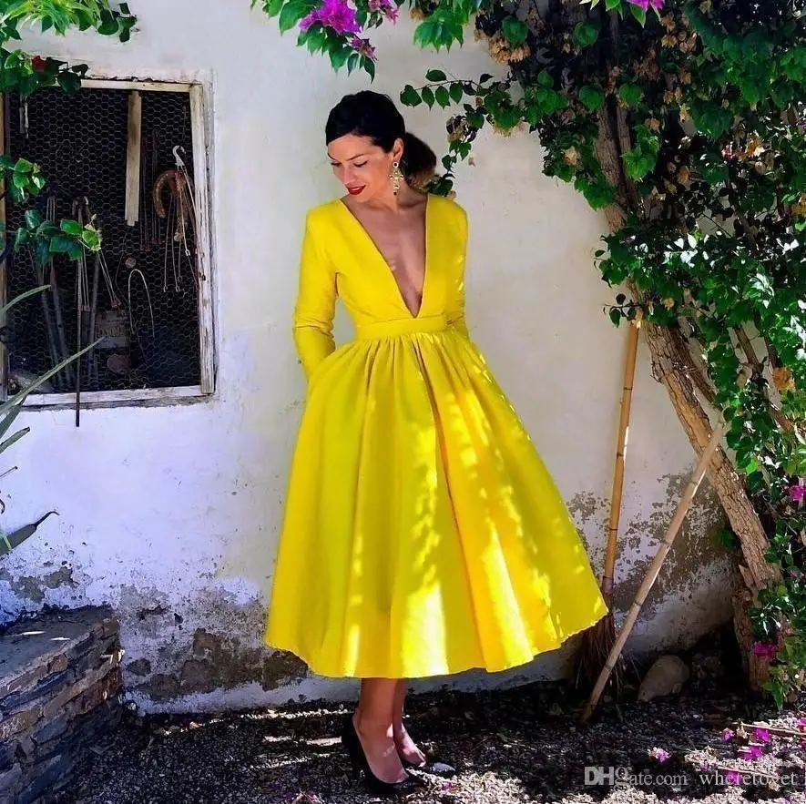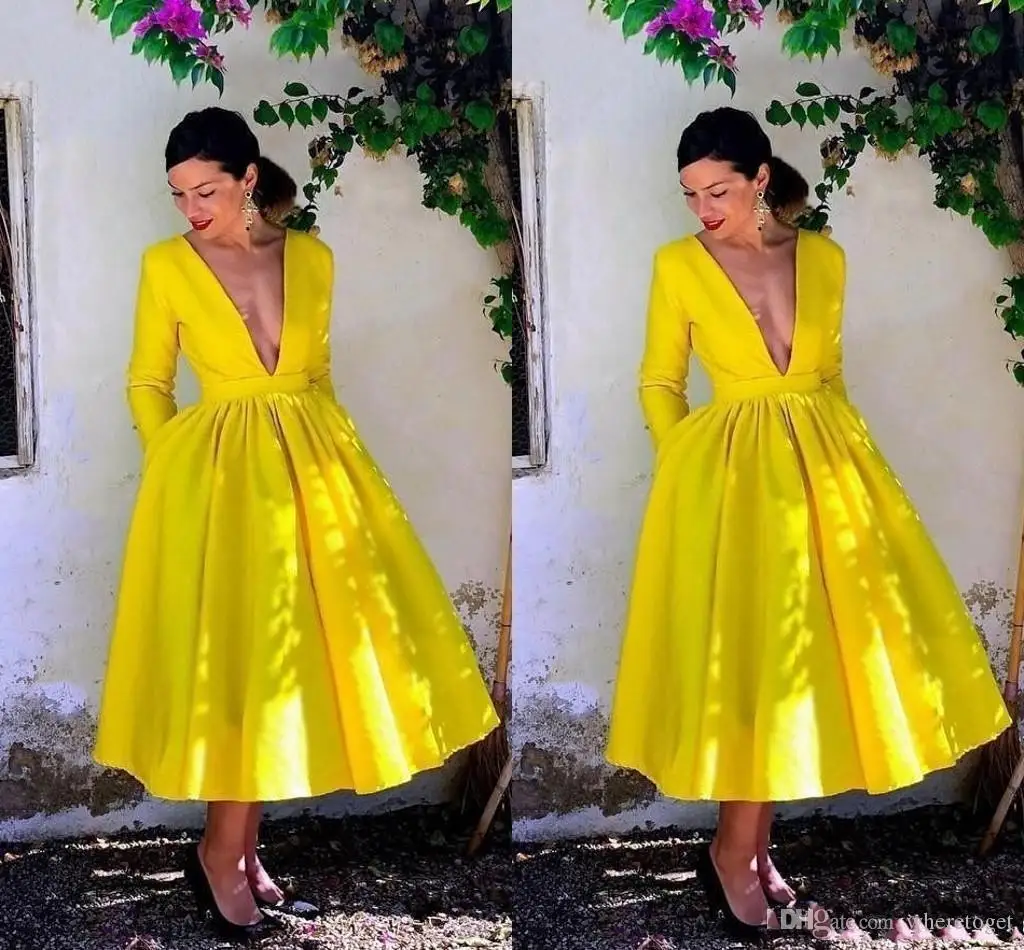 Пикантные желтые v-образный вырез разрез Вечернее платье Элегантное...