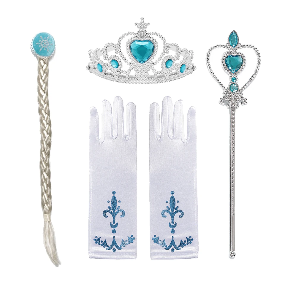 Платье для косплея Эльзы для девочек Холодное сердце, детский наряд принцессы, вечерние няя одежда Снежной королевы, Рождество, 2 шт.