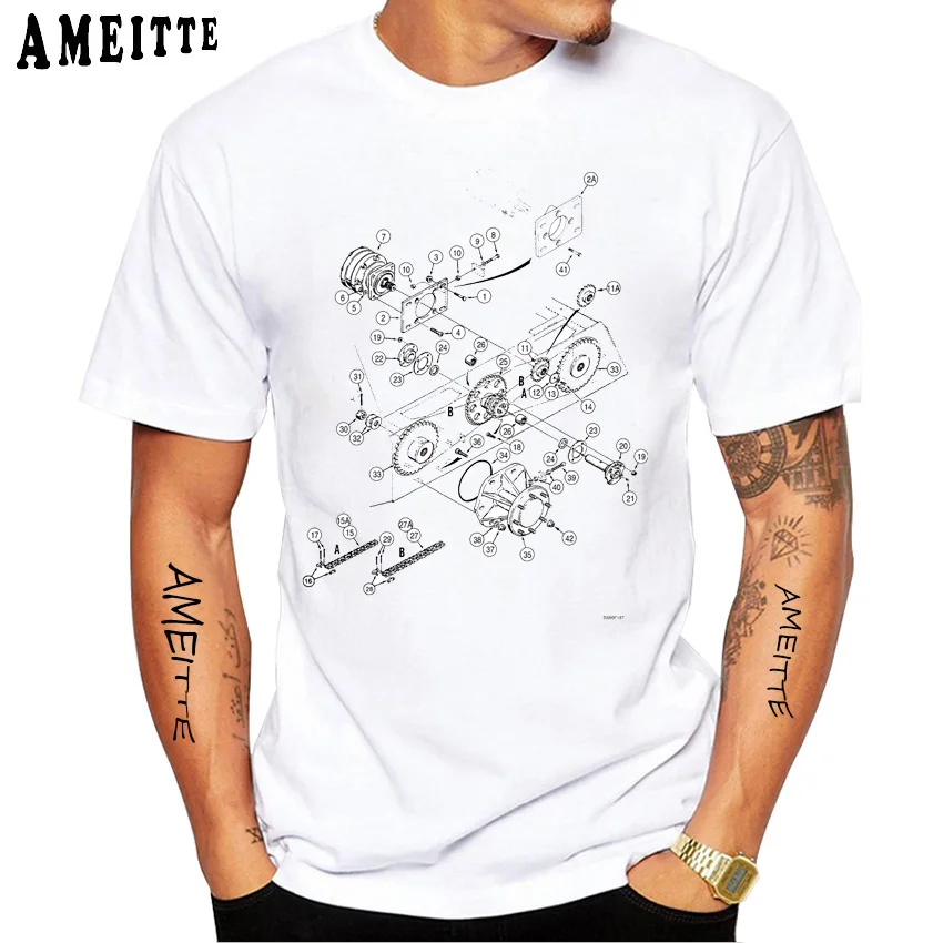 Футболка мужская с коротким рукавом, переключение передач велосипедной цепи, Классическая винтажная летняя повседневная, велосипедный спорт, любимая белая рубашка
