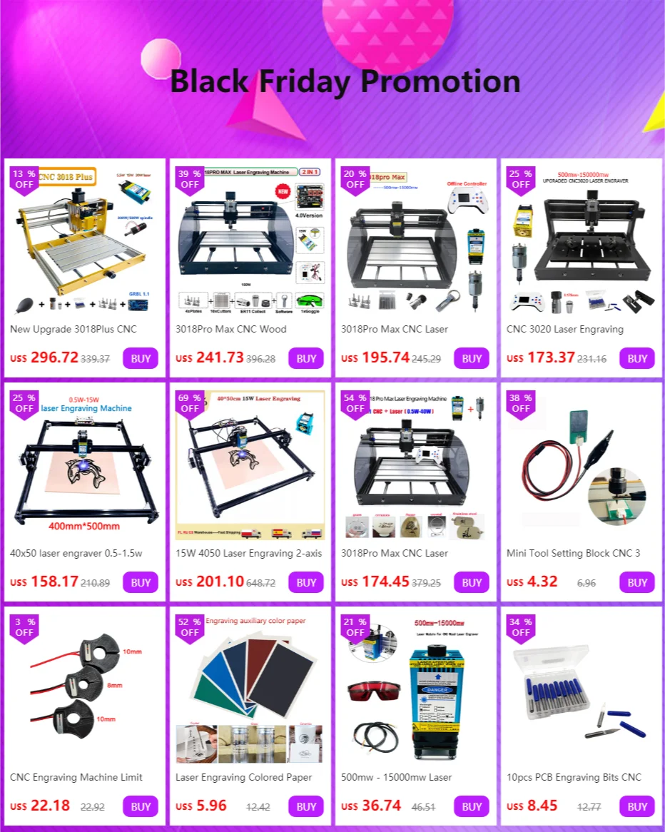 Важное примечание1. Шпиндель и сверло выгравированы: дерево, пластик, PCB, акрил, фанера и т. Д.2. Лазерная гравировка: дерево, пластик, кожа, кость, камень, бумага, оболочка и т. Д.3. Вы можете настроить фокусное расстояние лазера, и вы можете настроить лазерное питание в программном обеспечении4. Автономный контроллер поддерживает автономную работу, вам не нужно будет подключаться к компьютеру5. У нас есть 6 вариантов, вы можете выбрать различные лазеры мощности6. По умолчанию мы отправляем вилки питания европейского стандарта, если вам нужны другие вилки питания, пожалуйста, свяжитесь со мной, спасибо Посылка включает в себя Вариант 1 стандарт:1 шт. 3018pro CNC полный комплект1 шт. ER114 зажима10 шт. бит1 шт. источник питания1 шт. USB флеш-накопитель Опция 2-6 добавить лазер + очки (только различные лазерные мощности)Варианты размеров:Нет контроллера: Подключите устройство к компьютеру для работыДобавить контроллер: можно подключить устройство непосредственно к автономному контроллеру для работы, нет необходимости подключаться к компьютеру О программном обеспеченииМы отправляем товары, включая программное обеспечение и инструкции по установке, вы получите флеш-накопитель USB, вы также можете сообщить мне свой адрес электронной почты, я могу отправить вам программное обеспечение и инструкции по установке.Гарантийное обслуживаниеМы предоставляем гарантию на один год, и мы решим все ваши проблемы после продажи!Мы проверим все товары перед отправкой, мы гарантируем, что вы получите продукцию высокого качества!В течение 15 дней с момента получения товара, если какие-либо детали повреждены, мы вышлем вам новую часть бесплатно!