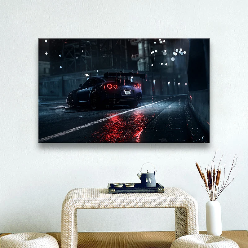 Классическая спортивная Автомобильная Настенная картина Дождь под дождем Nissan GTR для гостиной, домашняя Картина на холсте для украшения комнаты