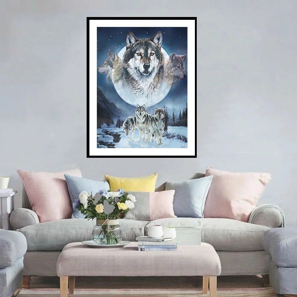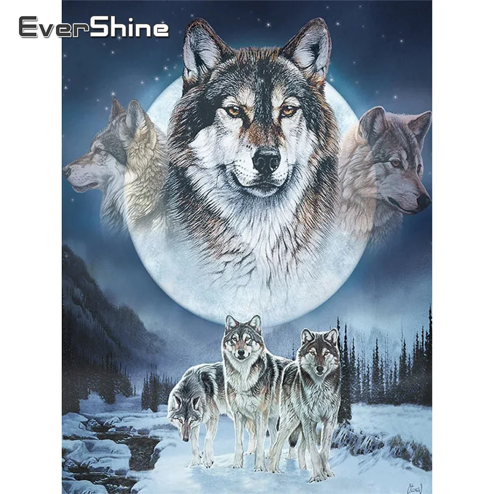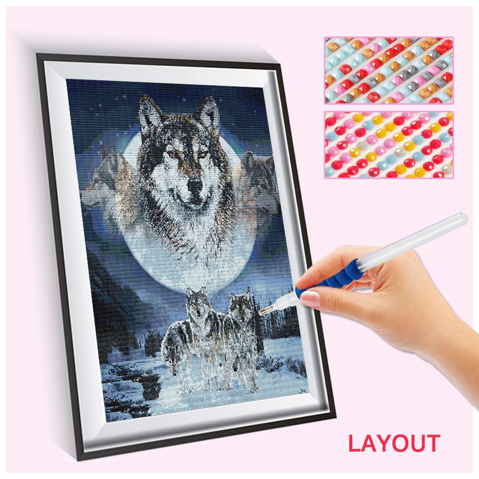 Алмазная живопись с изображением волка, алмазная вышивка, животные, рисунок с Луной, домашний декор